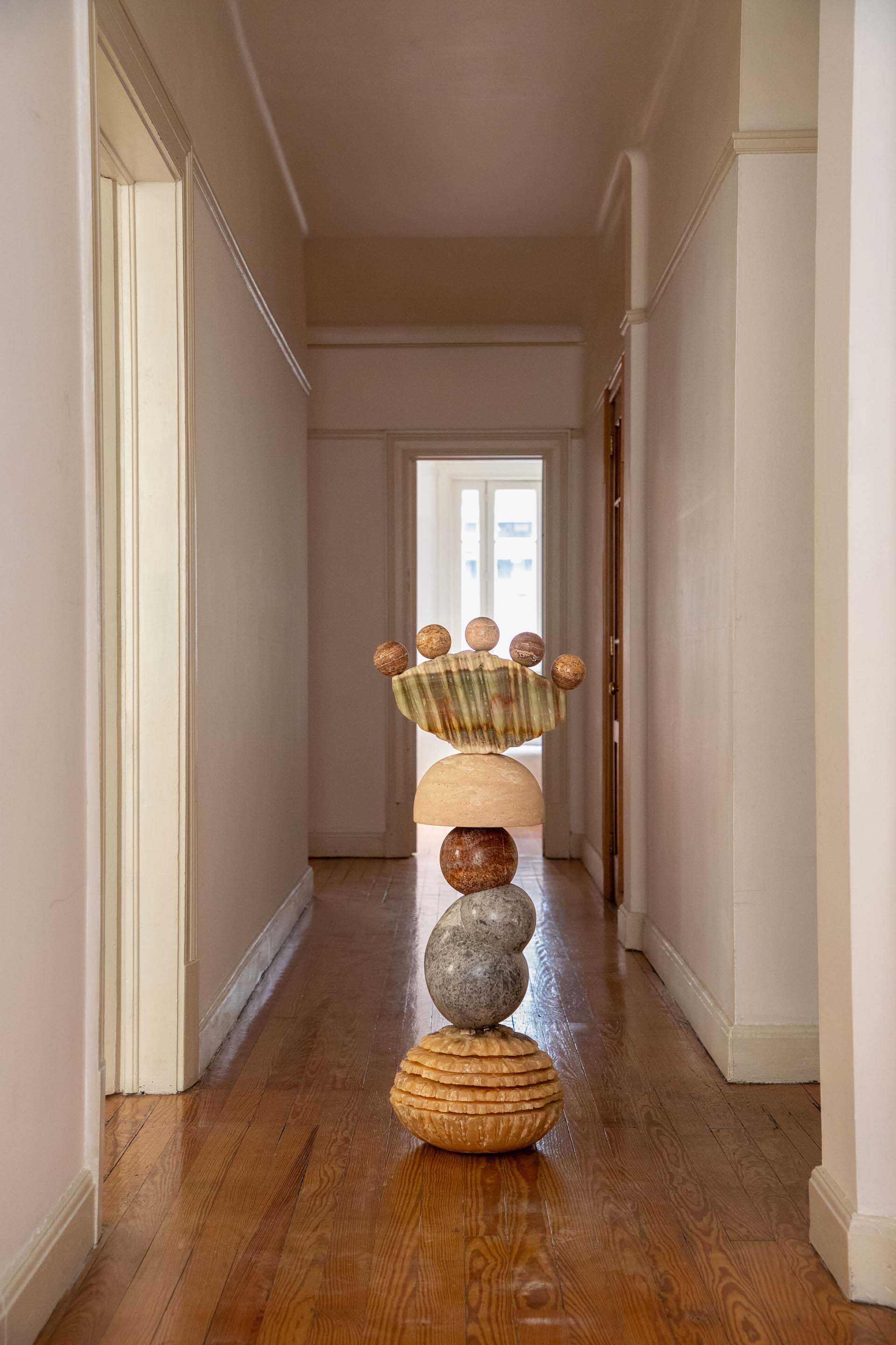 Работы, представленные в Friends Artspace, интерпретируют классические формы и техники, придавая им новый смысл. Светящиеся объекты Studio Kawabi из дерева и бумаги созданы с использованием японских техник работы с материалами, превращаясь в священные предметы для воображаемого родового дома. Дизайнер Аспен Голан переосмысливает ремесло изготовления метел XVIII и XIX веков, превращая домашние инструменты в скульптурные памятники коллективному труду. Говоря о предметах, которые часто остаются незамеченными, дизайнеры выносят в центр внимания материалы из промышленной сферы, предлагая нам разглядеть в них интимность мастерства и красоту переосмысления традиций.