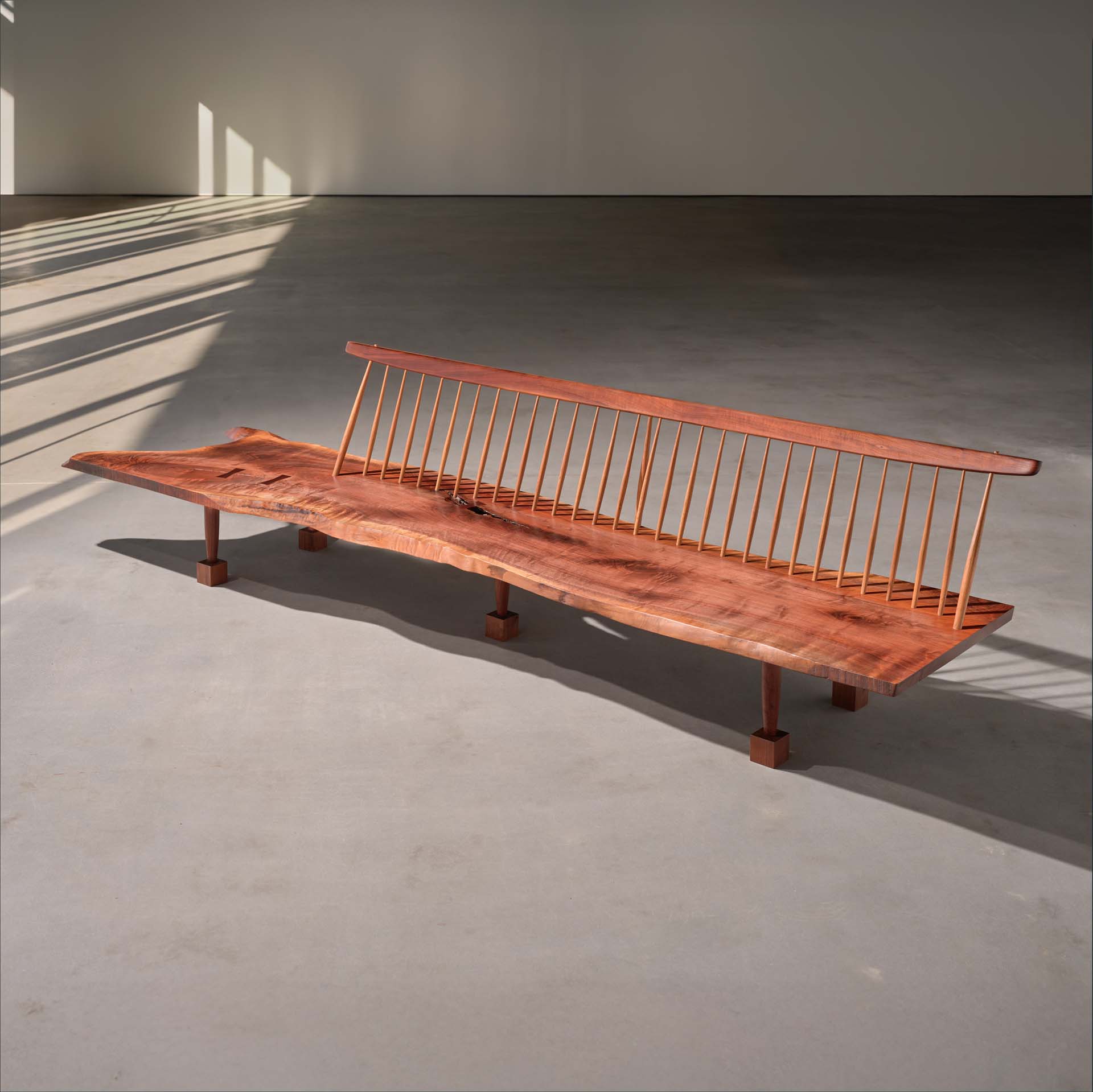 Галерея Moderne (Филадельфия), специализирующаяся на работах американского дизайнера японского происхождения. Жорж Накашимапредставит авторские работы, вошедшие в историю американского дизайна. К объектам на пересечении западных и восточных традиций относятся пара редких скамеек Conoid из американского черного ореха, созданных Накашимой в 1972 году, а также стол Kevin 1981 года с выразительной столешницей произвольной формы из массива английского ореха, контрастирующей со строгой архитектурной угловатостью основания и опорных элементов.