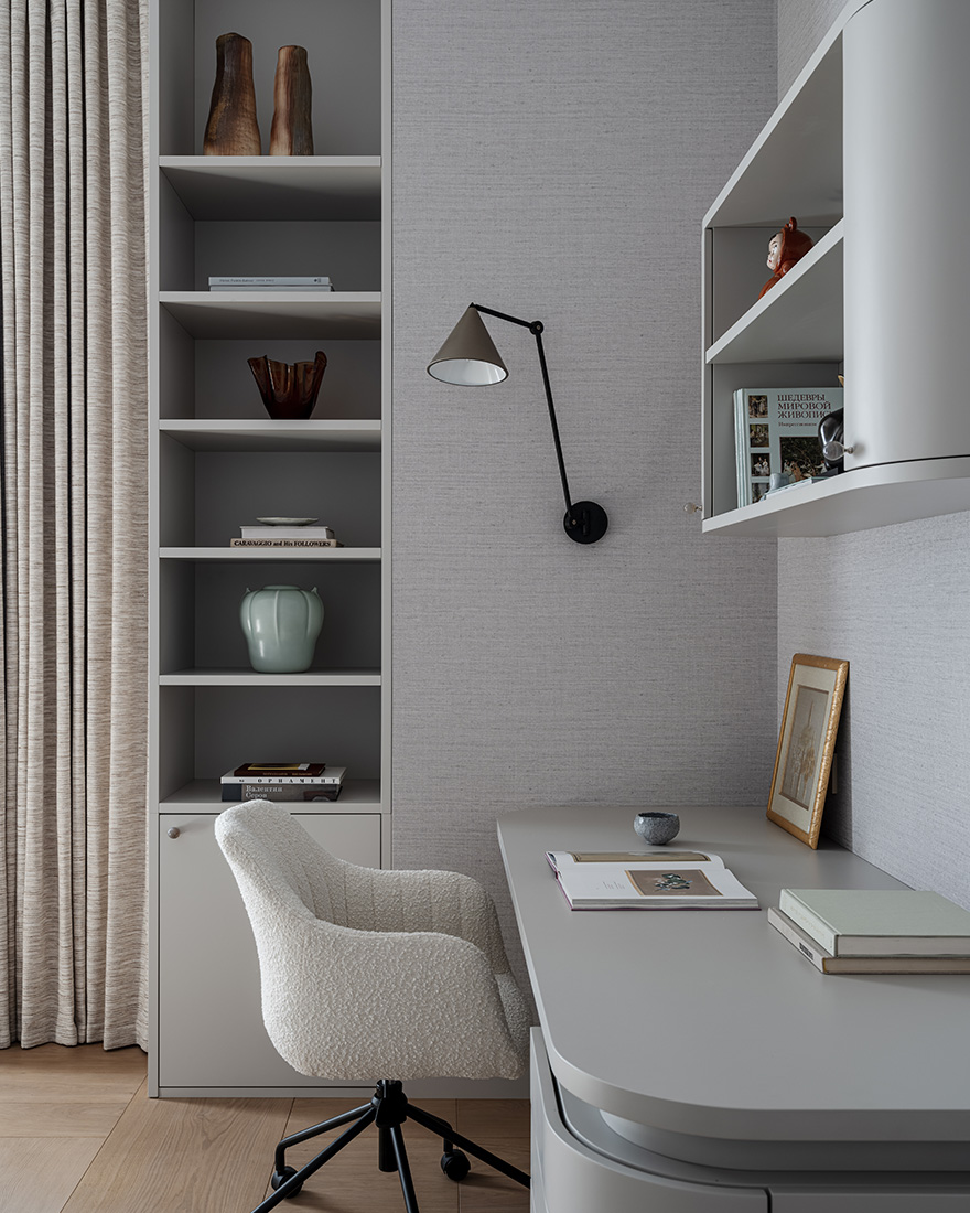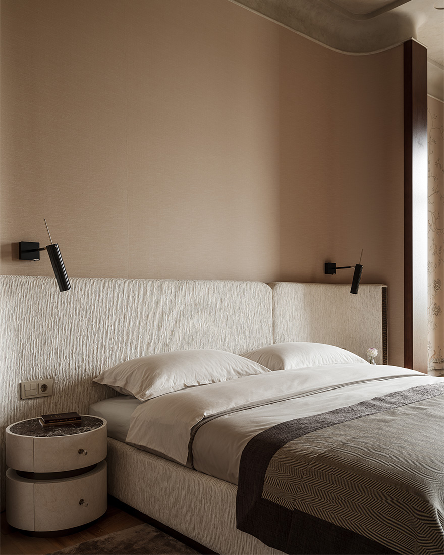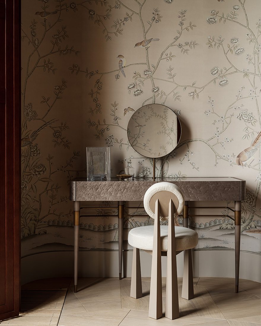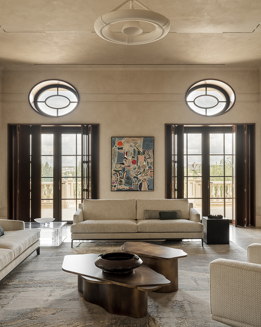 «Я обратился к первоисточникам: элегантной роскоши французского ар-деко, лаконизму старинных вилл – и сделал эти стили комфортными по-современному. Оригинальные детали дома позволили создать красивую планировку и выстроить оси фасада. Это было уже половиной успеха. Я решил подчеркнуть архитектурную пластику, отдельные элементы которой повторяются практически в каждой комнате, соединяя пространства друг с другом».