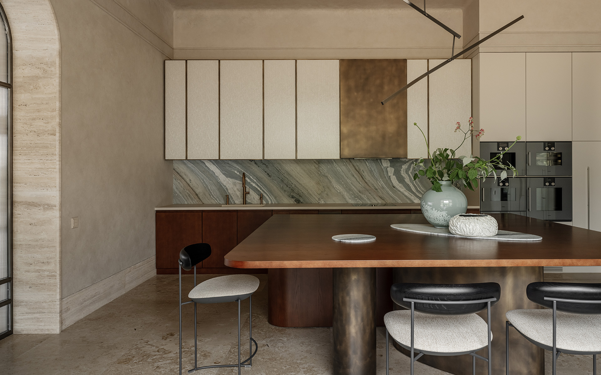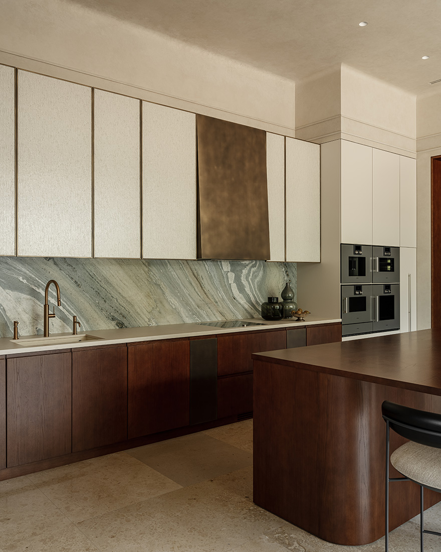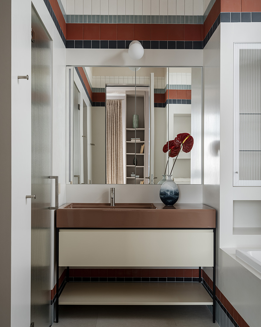 «Я обратился к первоисточникам: элегантной роскоши французского ар-деко, лаконизму старинных вилл – и сделал эти стили комфортными по-современному. Оригинальные детали дома позволили создать красивую планировку и выстроить оси фасада. Это было уже половиной успеха. Я решил подчеркнуть архитектурную пластику, отдельные элементы которой повторяются практически в каждой комнате, соединяя пространства друг с другом».