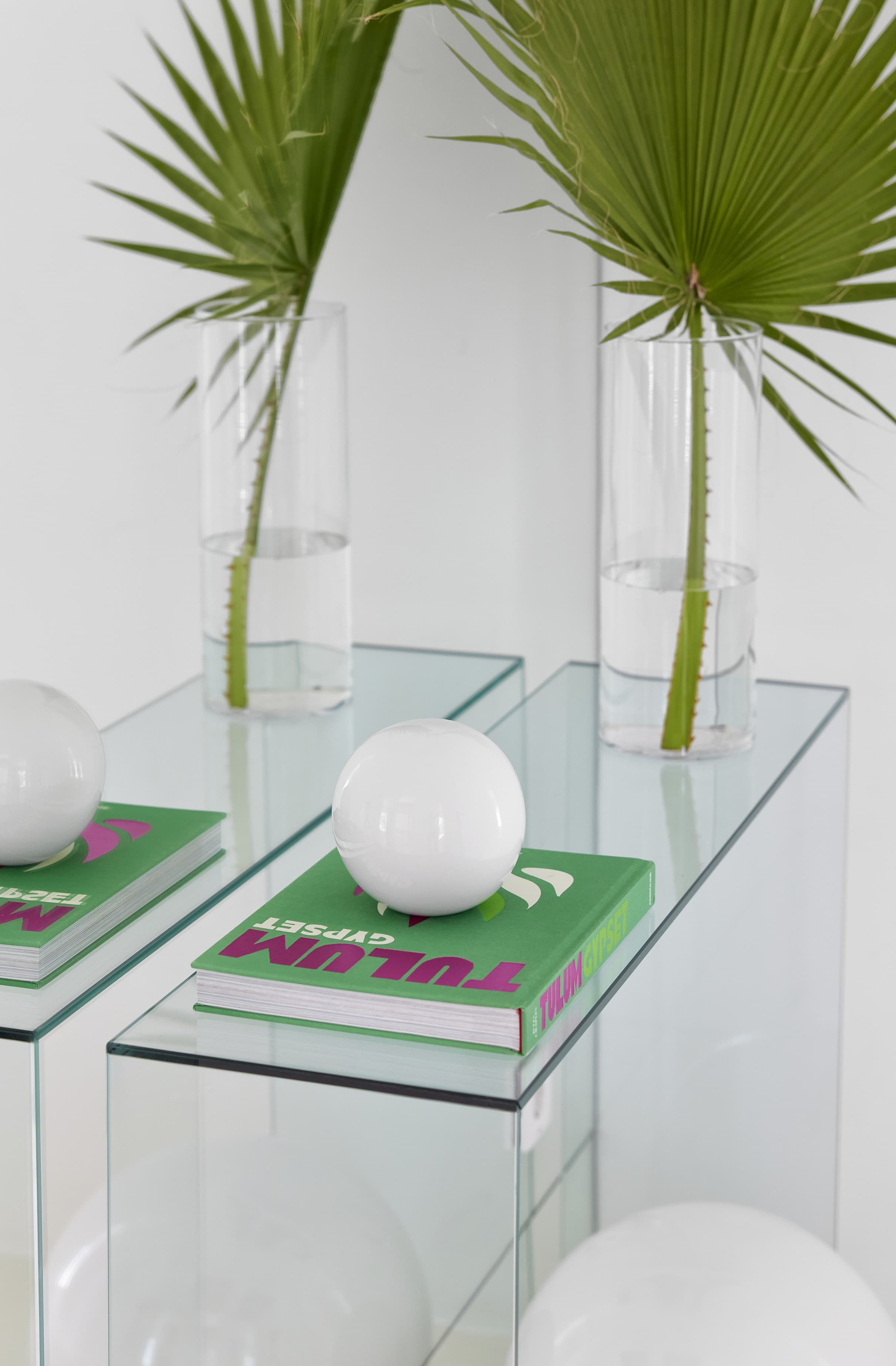 «Скульптурные, блестящие предметы контрастируют с мягкими, округлыми формами», — отмечает дизайнер. — Мы использовали как классику Kartell, так и оригинальные произведения, например, подставки для зеркал, которые становятся художественной доминантой в пространстве. Дом получился живым и адаптивным – он не диктует правила, а поддерживает любой ритм жизни. В этом наш главный успех: пространство сохраняет свою индивидуальность, но остается комфортным для реальной жизни.