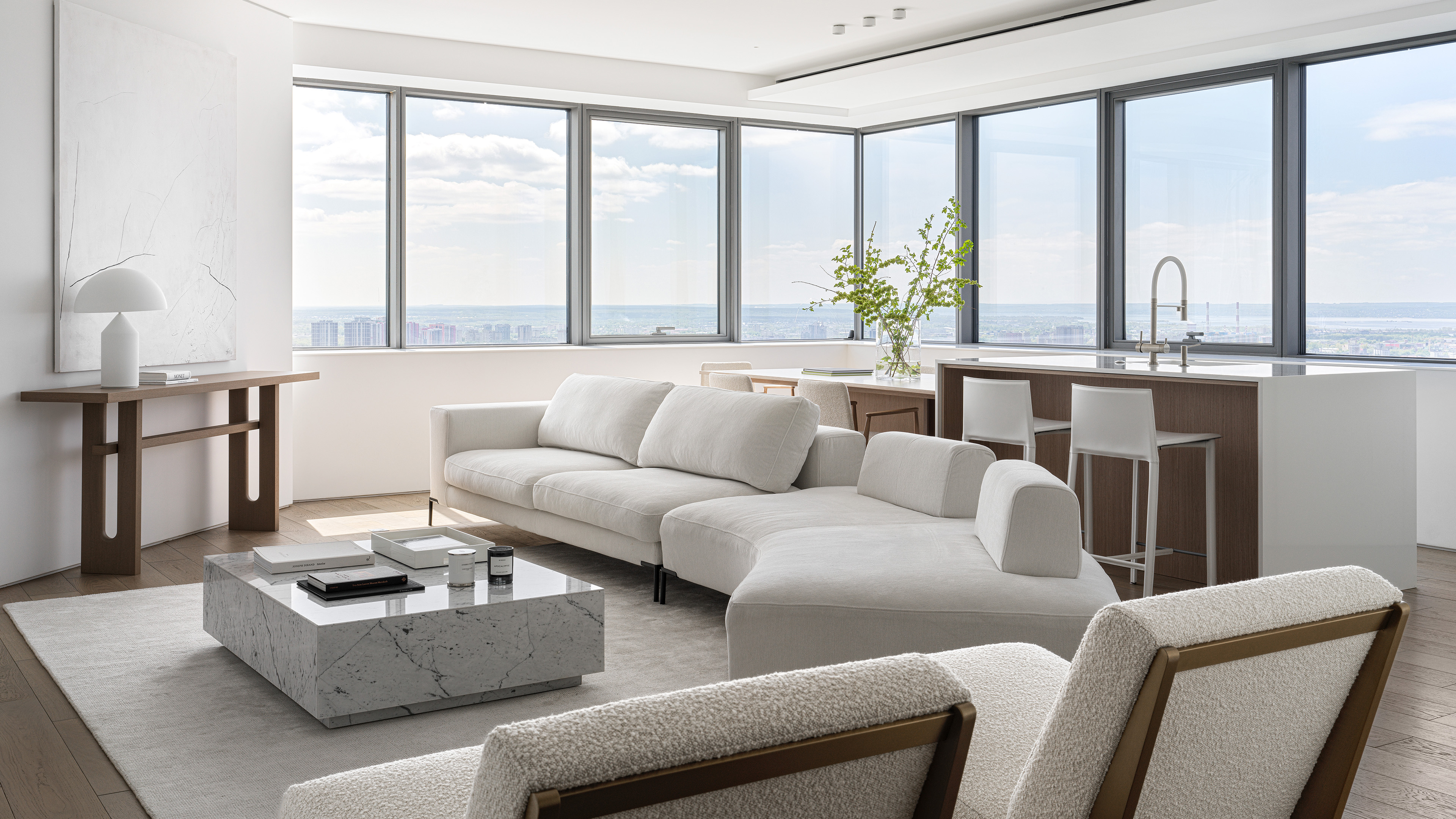 «Проекту удалось создать непрерывную связь между интерьером и окружающей средой, объект кажется законченным на 100%. Мы убрали весь визуальный шум, и теперь квартира действительно ощущается как на одном из облаков в небе», — делятся авторы дизайн-проекта.