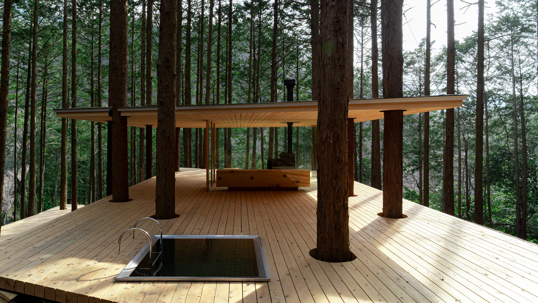 Daichi Studio построила деревянную сауну в японском лесу — небольшое здание с площадью 100 квадратных метров. Счетчики стали органической частью природной среды. Основатель студии Makoto Tanijiri характеризует концепцию этого проекта как «промежуточную связь между городом и природой, между людьми и объектами между стажерами и внешними, между функцией и чувством».