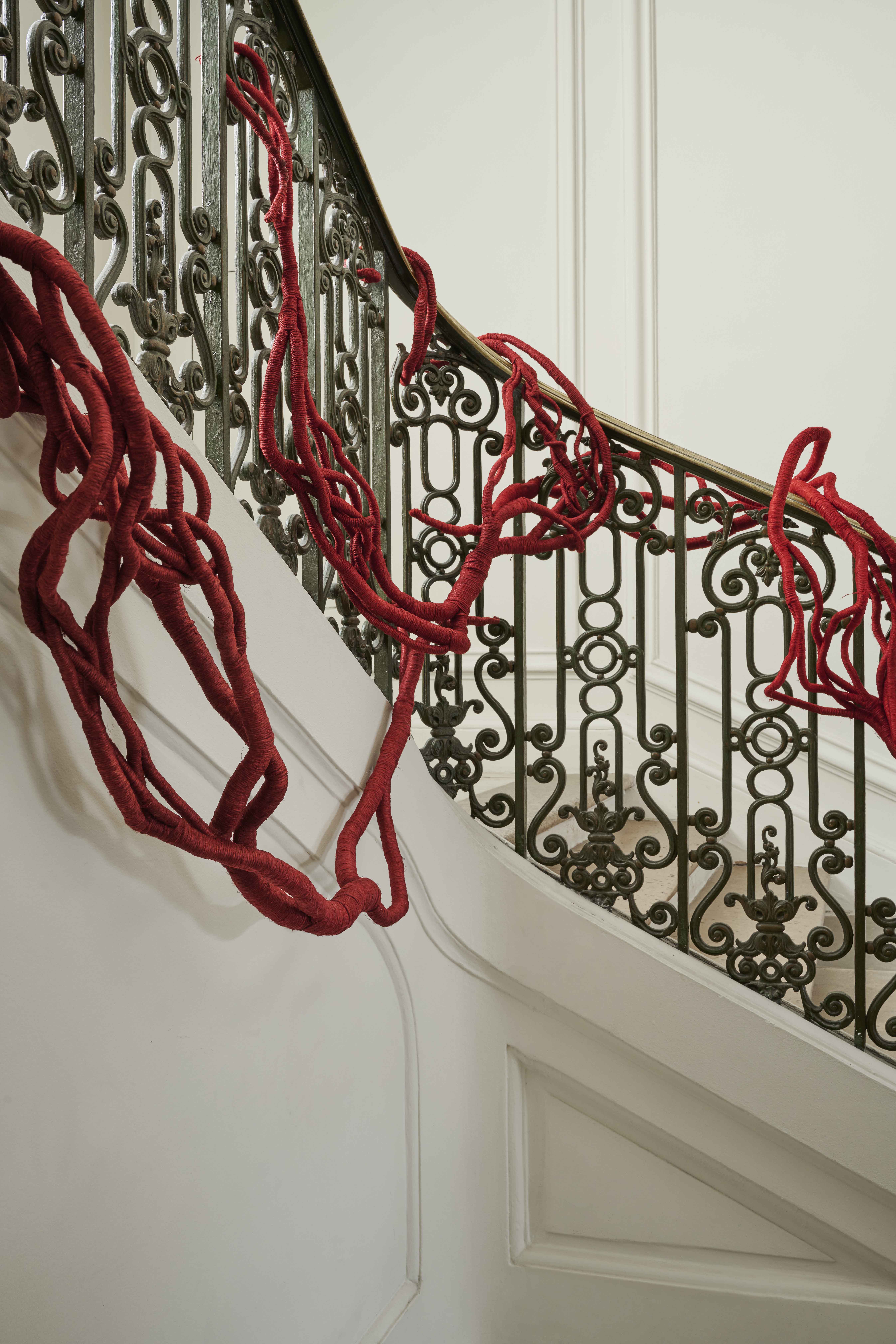 Парижская галерея Maison Parisienne представит текстильные работы французской художницы Од Франжу, которые украсят фасад и внутренние помещения Hôtel de Maisons. Плетения в форме щупалец развернутся вдоль балкона и переплетутся с металлическими арками сада, создавая поэтический диалог между произведением и исторической архитектурой.