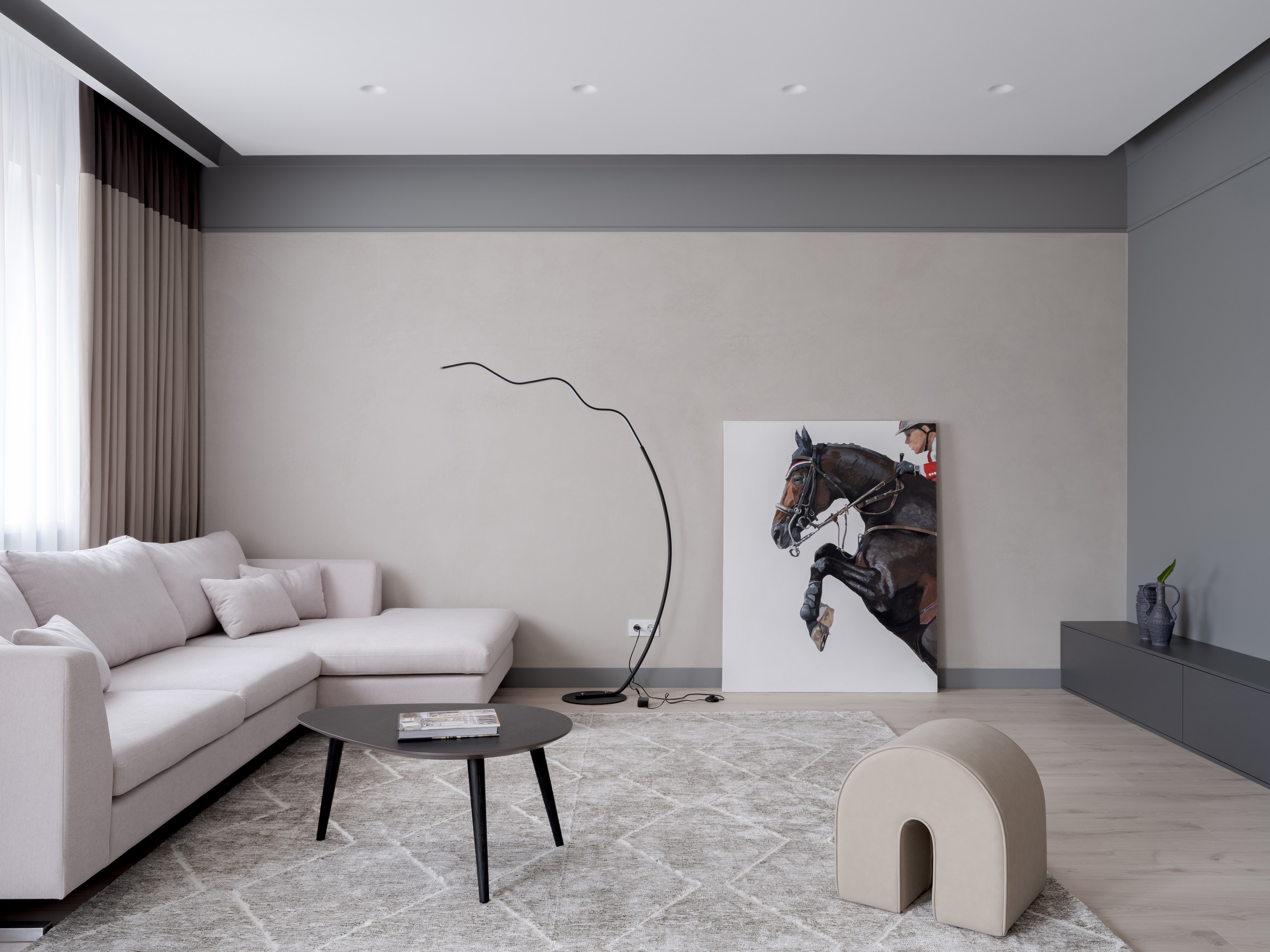 Дом одноуровневый, площадью 120 м². метры. Работа над проектом дизайнеры начали, когда застройщик передал дом и ключи заказчику. Коммуникации уже были, но перегородок не было. Среди дефектов мы отметили две несущие стены в центре дома, смещенные друг от друга, с узким проходом между ними, а также низкую балку, разделявшую кухню и гостиную и в целом понижающую общий уровень помещения. потолок. .