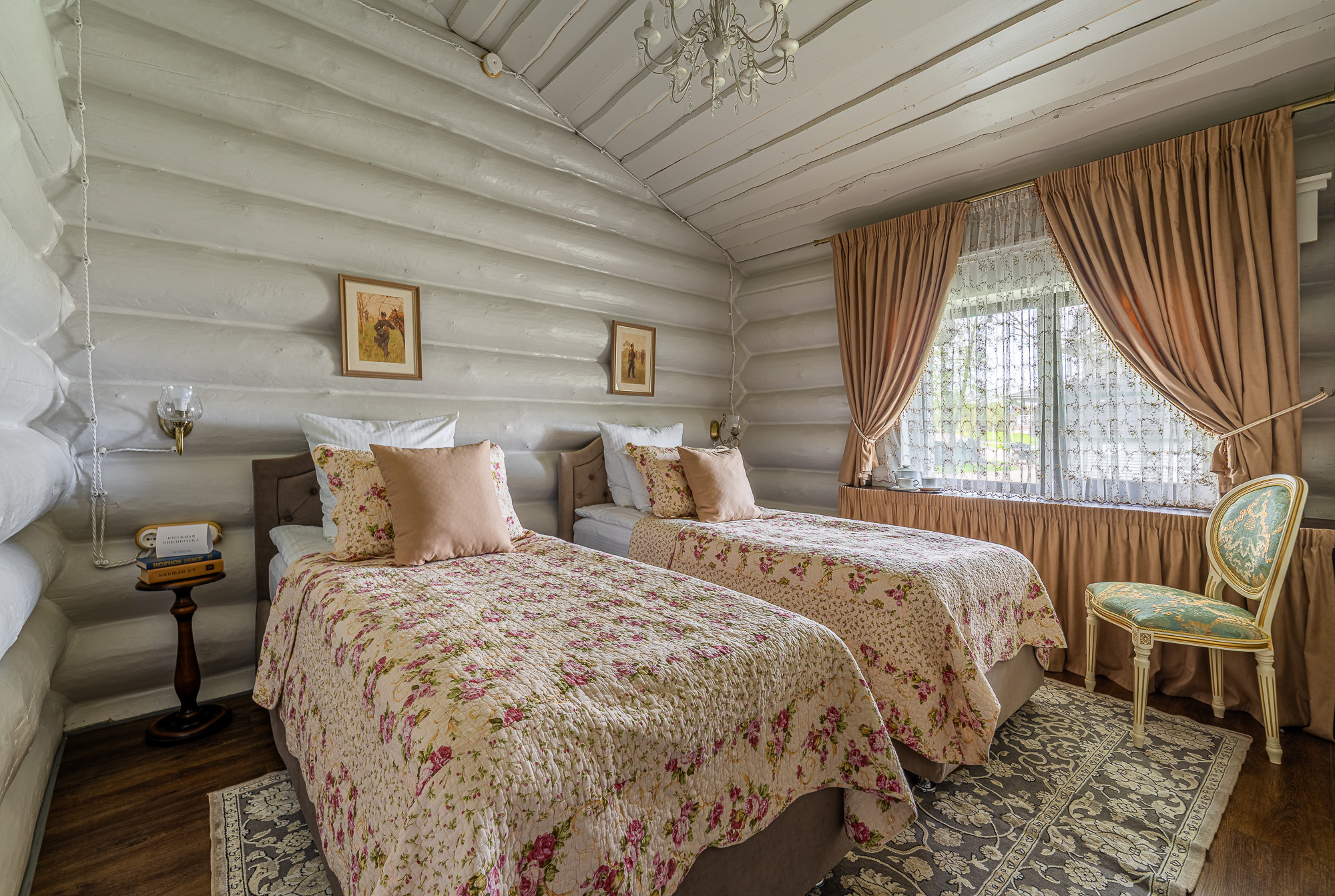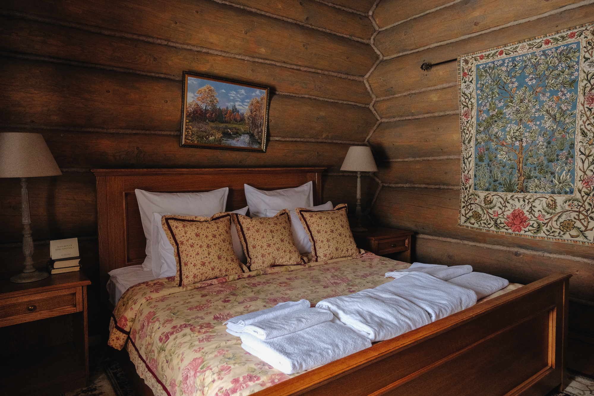 Сердце территории отеля – главное здание «Терема». Это самое высокое деревянное здание в России. Вы можете остановиться в одном из 26 комфортабельных номеров или выбрать более уединенный вариант: элитные особняки или просторные коттеджи, рассчитанные как на семейный отдых, так и на большие компании друзей. Дарья лично работала над интерьерами всех пространств. «Дело в том, что у меня высшее архитектурное образование и 20-летний опыт работы архитектором и дизайнером интерьеров», — делится она. «Поэтому благоустройство территорий, домов и интерьеров — одно из моих любимых занятий в усадьбе!» В архитектурном прошлом я работал в классических стилях, имел опыт работы с памятниками архитектуры, опыт проектирования отелей — все это пригодится и сейчас.