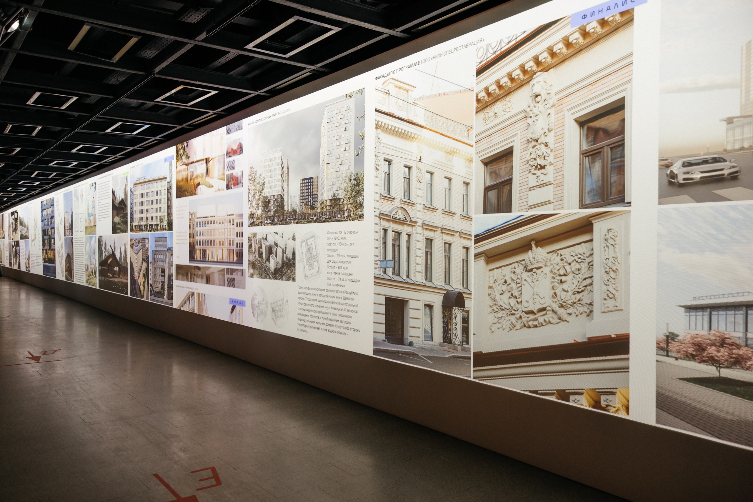Выставка «Строительство и перестройка» рассказывает о том, как изменения 1980-1990-х годов повлияли на архитектуру и культурную среду города в целом. Экспозицию составляют проекты архитекторов тех лет, в том числе так и не реализованные утопии. Например, можно увидеть эскизы бионического «Дома дельфинов» Бориса Левинзона, торгового комплекса «Штрих-код» архитектурной мастерской «Витрувий и сыновья» и снесенного футуристического телецентра Сергея Шмакова.
