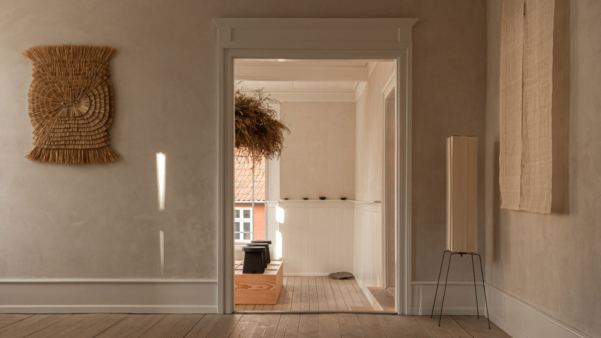 Интерьер площадью 110 м². метров построен на изысканной работе с цветом и фактурой. Компания Norm Architects выбрала приглушенную, почти растворяющуюся палитру песка, камня и выцветшей травы, вдохновленную гранитными скалами Борнхольма и мягким северным светом. Стены здесь не привлекают к себе внимание, а отступают вглубь, превращаясь в нейтральное полотно для искусства и жизни. На выставке представлены керамика и предметы искусства от местных ремесленников и японских художников. Этот диалог не случаен: проект основан на общем уважении к материалам, несовершенству и ручной работе в японских и скандинавских традициях.