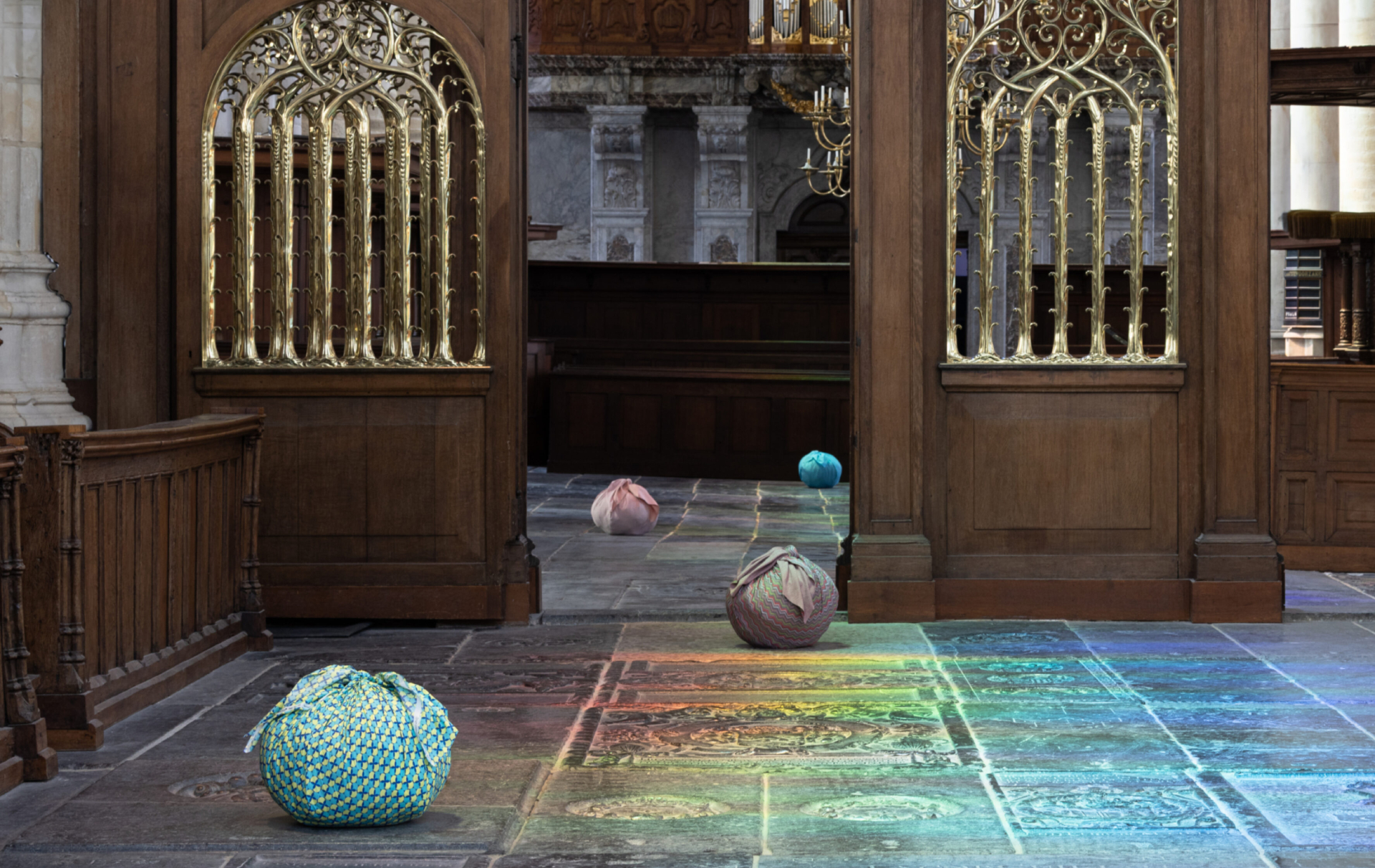 Южнокорейский художник Кимсуджа преобразовал готическую церковь для аудита Керка в Амстердаме с помощью текстиля и света. Благодаря его захватывающей установке для дыхания — Mokum, он соответствует предметам миграции, внутренним ощущением принадлежности и временной природе дома, предлагая думать об идентичности и культурном обмене. Работа основана на Kimsuji Bottari, традиционной для работы Kimsuuji, блестящих кроватях, которые используются для упаковки и хранения вещей в Корее.