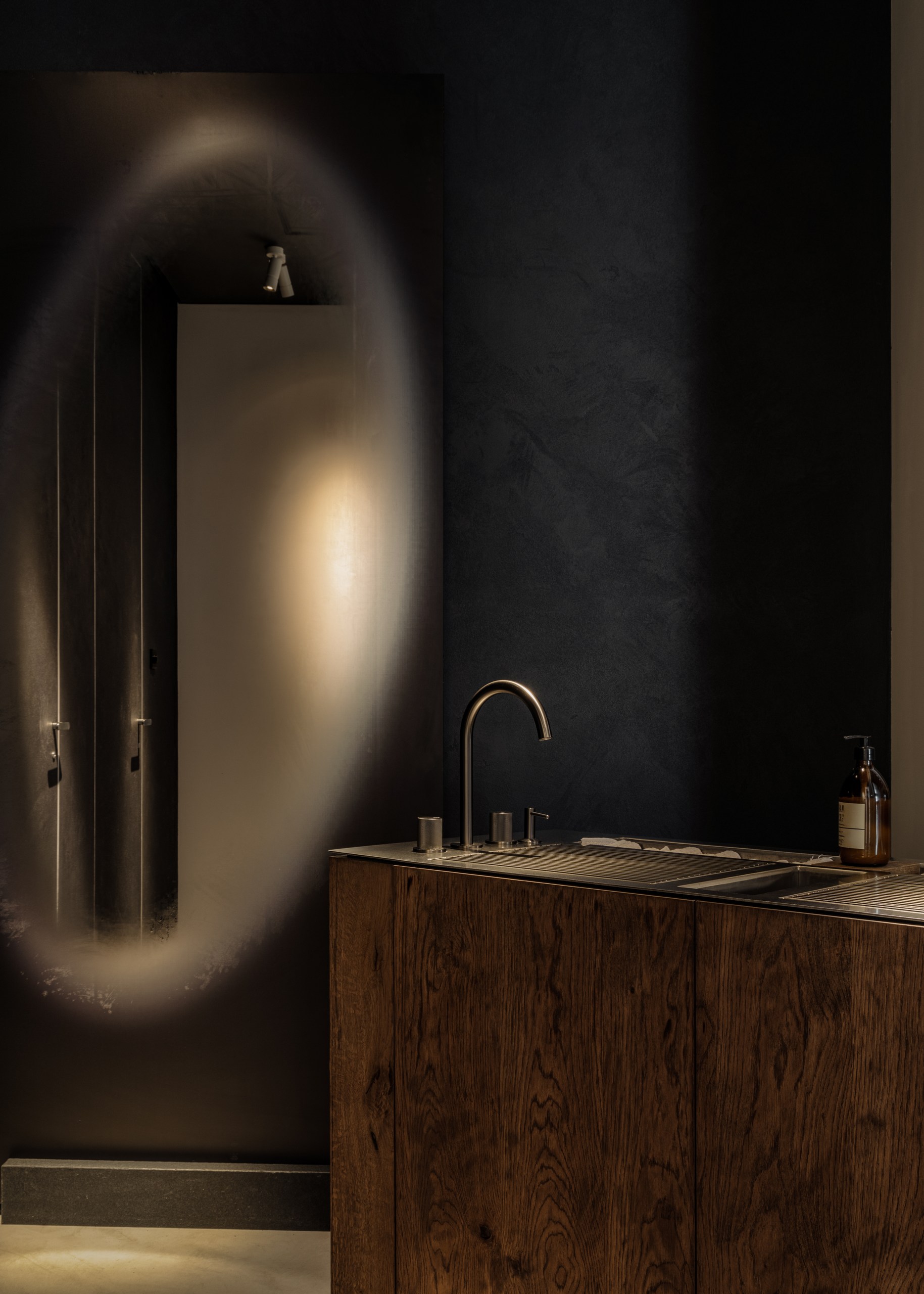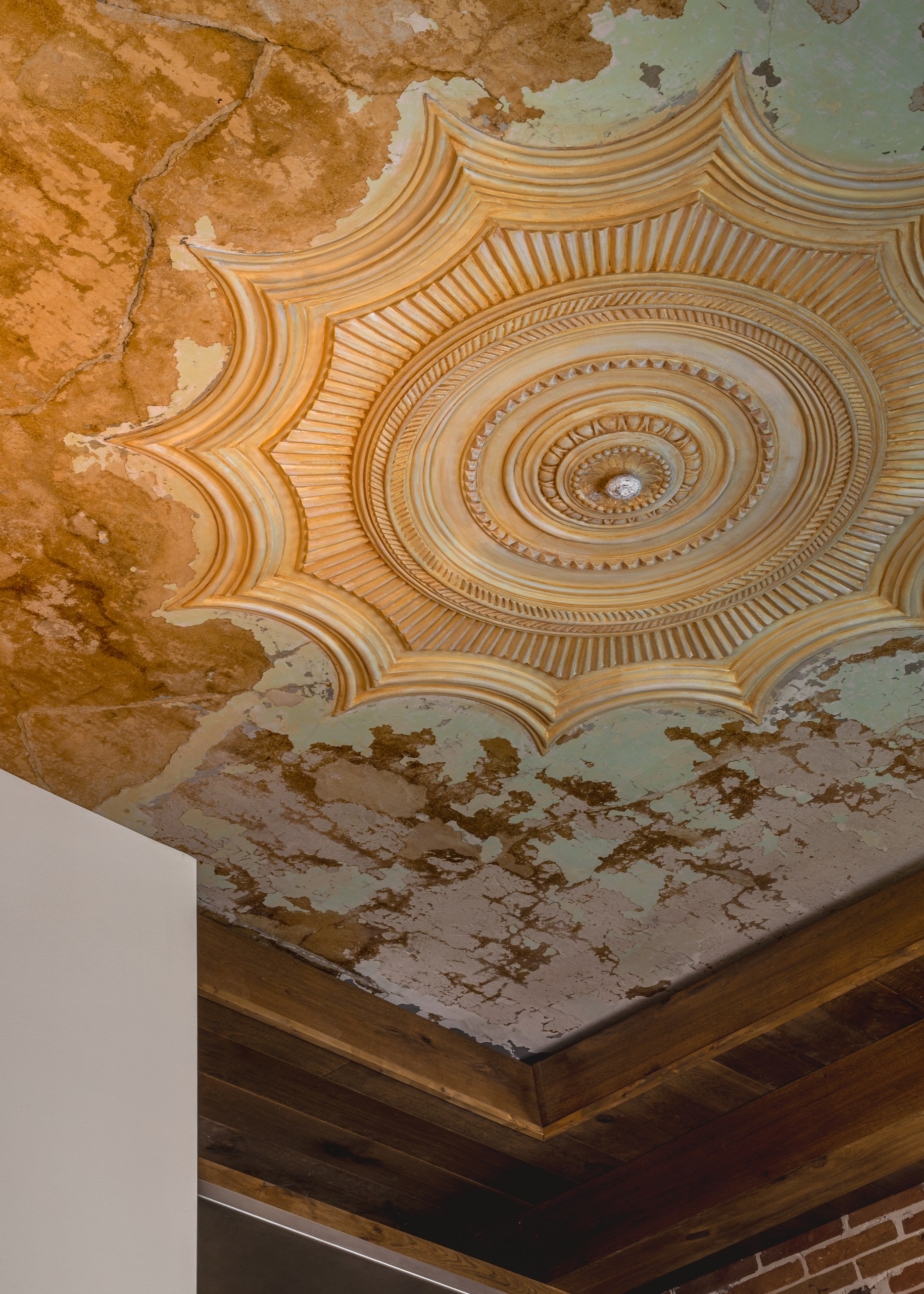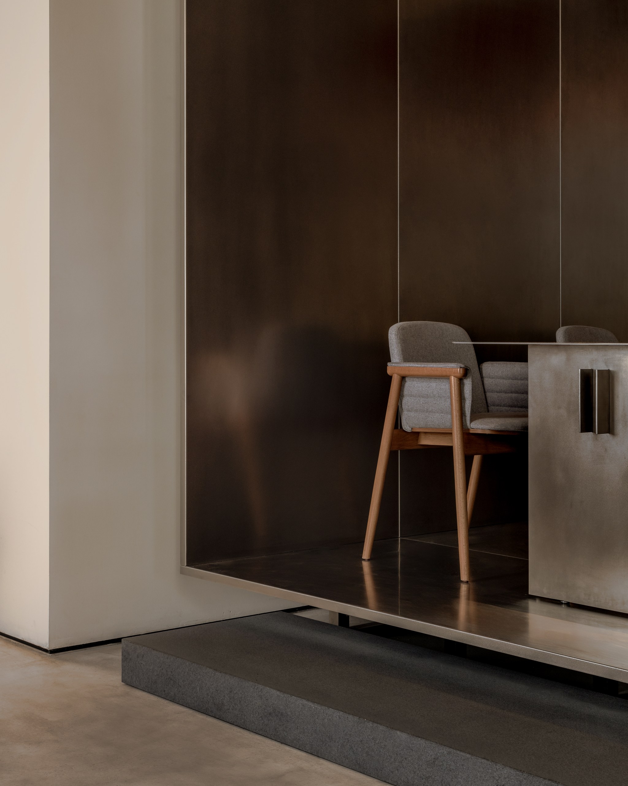 «Мы работали над историческим особняком начала XX века и участвовали в его реконструкции», — поясняют авторы проекта. «Изначально мы обнаружили ряд ценных элементов, которые во многом сформировали интерьер: кирпичные стены, потолочную лепнину и оригинальный деревянный потолок с балками, который нам пришлось реставрировать. Основная задача заключалась в том, чтобы органично интегрировать современную концепцию ресторана в этот богатый контекст».