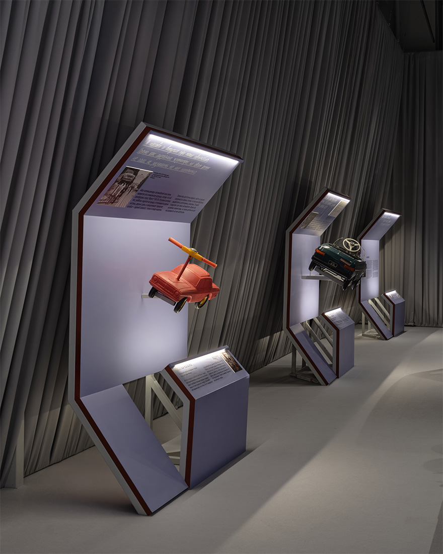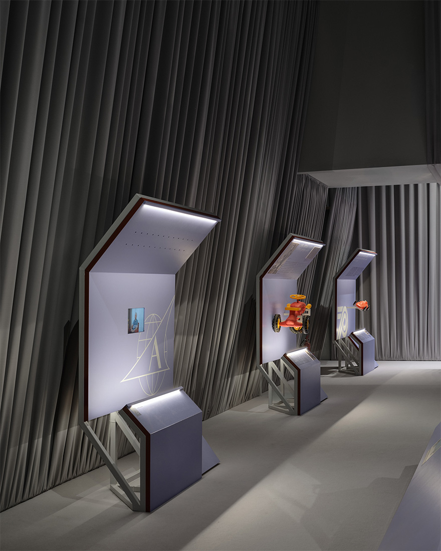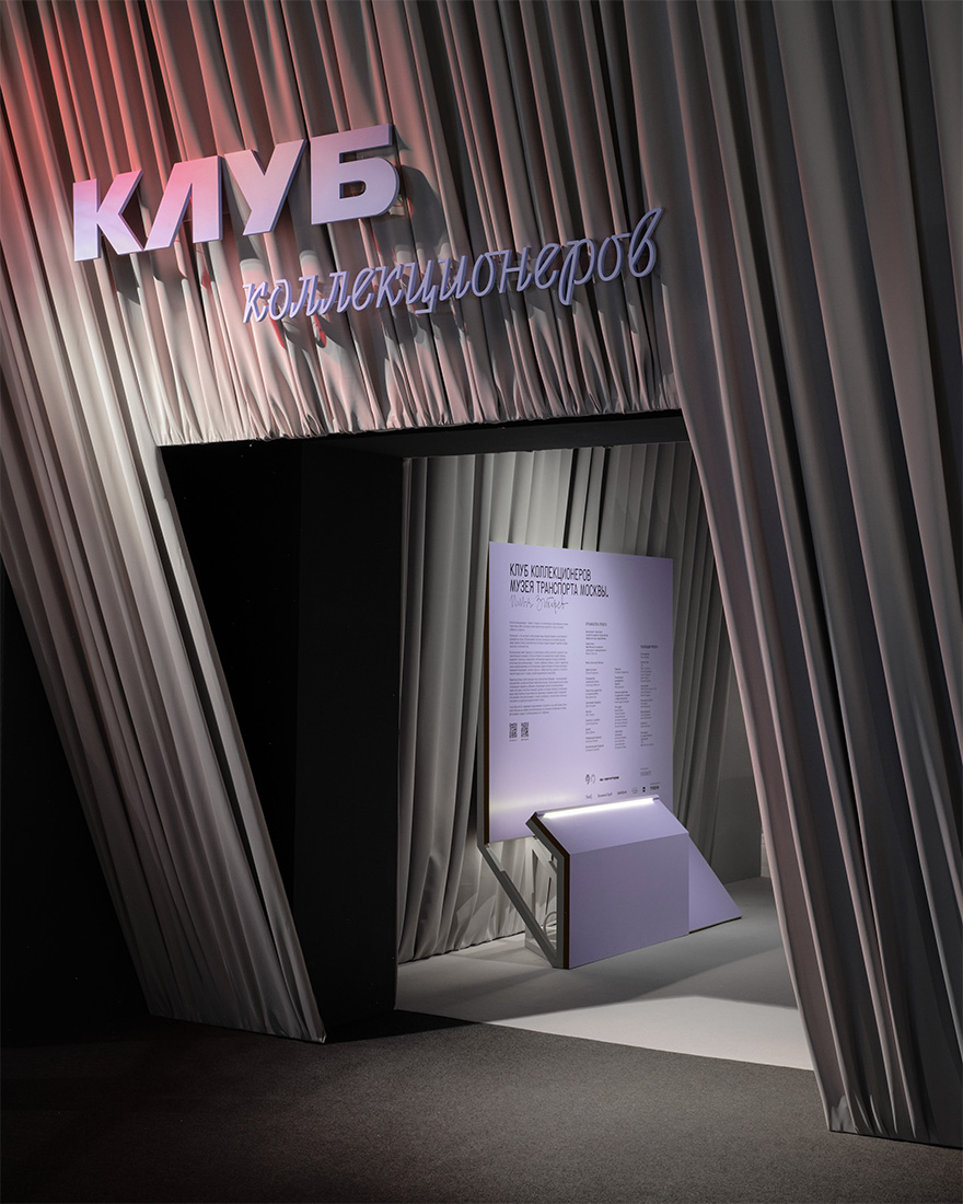«Выставка проекта «Клуб коллекционеров» рассчитана на ротацию — здесь поочередно будут представлены коллекции разных коллекционеров. Первым участником стал Илья Зибарев, остальные коллекционеры сейчас в работе, — поясняет команда .dpt. — Мы намеренно сделали выставочный материал универсальным: серый ковер и портьеры образуют нейтральный фон, который можно адаптировать под каждую коллекцию, а цветовая палитра стендов изменится. Для первой выставки мы использовали цвета, вдохновленные классическими цветами советских гаражей-ракушек из архивных фотографий.