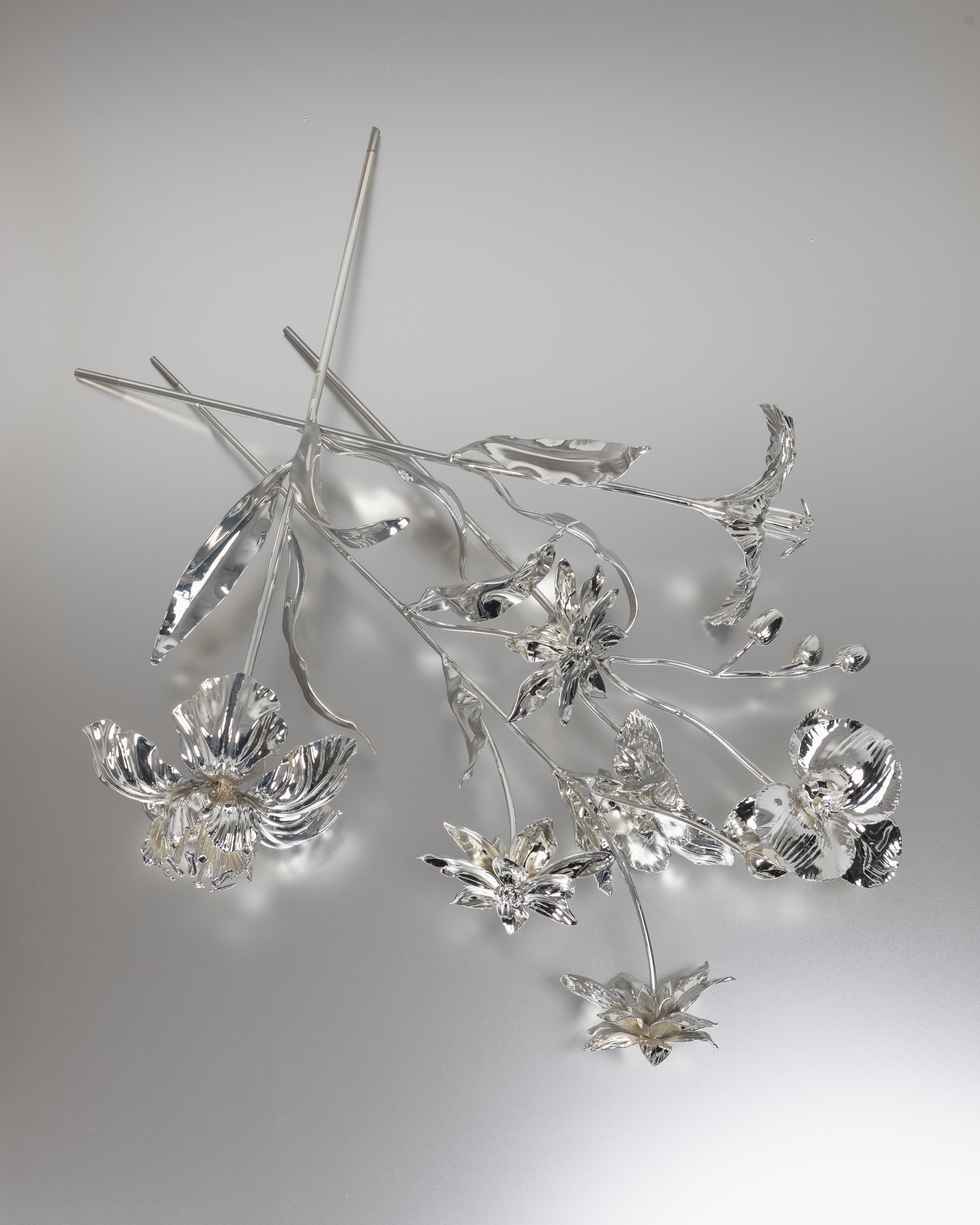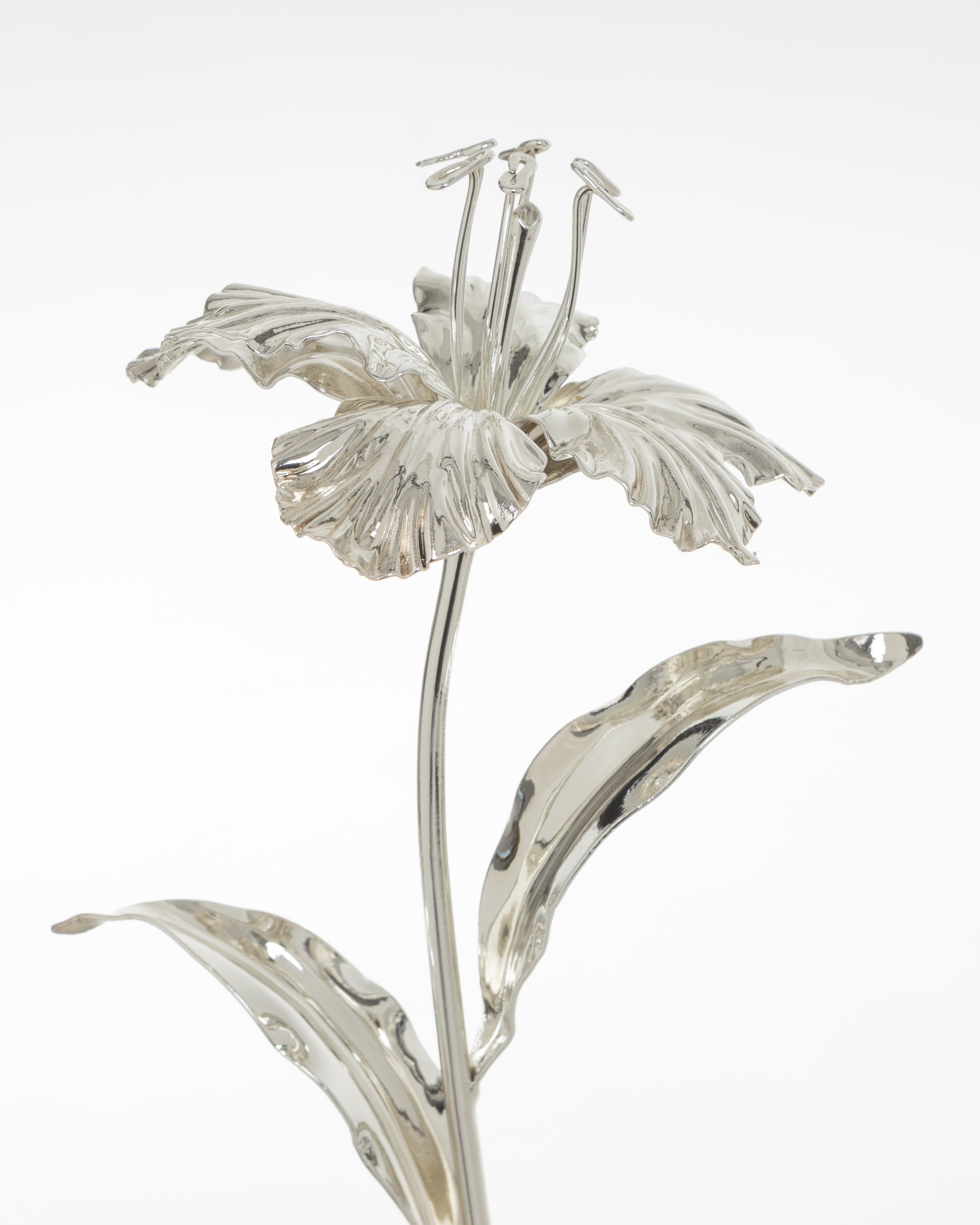 «Я хотел запечатлеть эфемерную красоту растительных пластиков в моем любимом материале, не подчиняемом времени, находится в стали. Эти объекты соединяют противоположности: момент и вечность, уязвимость и сопротивление, и хромированное покрытие, кажется, растворяет их в воздухе. По словам Елена Локастова.