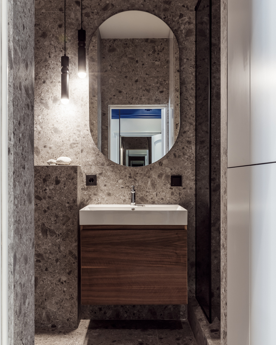 Эта квартира не является постоянным местом жительства владельцев, а вариантом для спокойного отдыха в любимом городе. Преображение устаревшего интерьера доверили Анастасии Денисовой. «Клиенты — мои друзья, — говорит она, — они веселые, независимые, с ними легко ладить. Им нужна была «дачная» квартира для семьи и друзей: много места для хранения вещей (от чемоданов до лыжного снаряжения), удобный и практичный интерьер.