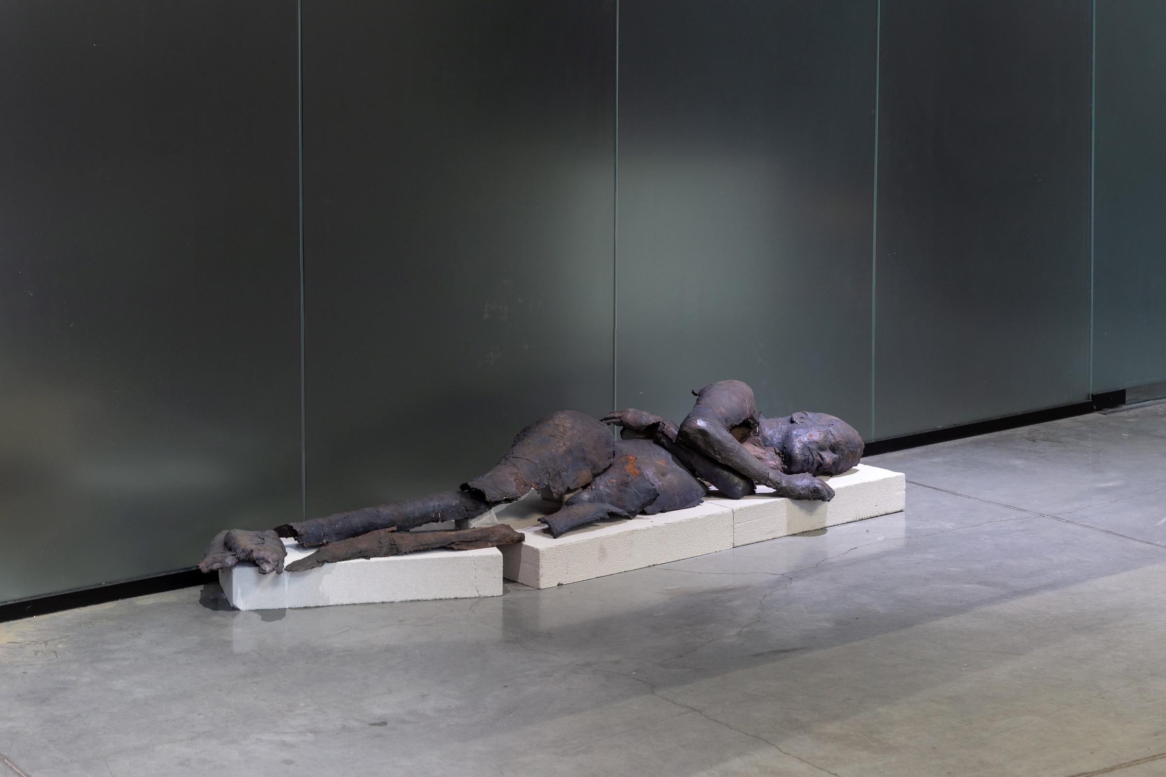 Дизайн комнаты отсылает к модернизму 1960-х годов с его любовью к структурной ясности и выразительным материалам. Все внимание приковано к картине, расположенной над кроватью из лакированного шпона. Она была написана специально для проекта Валерии Семантовской, одной из любимых художниц Алексея. Цветовая палитра полотна подчеркивает общую палитру квартиры, а визуальный язык напоминает произведения художников соцреализма, оставаясь при этом явно современным.