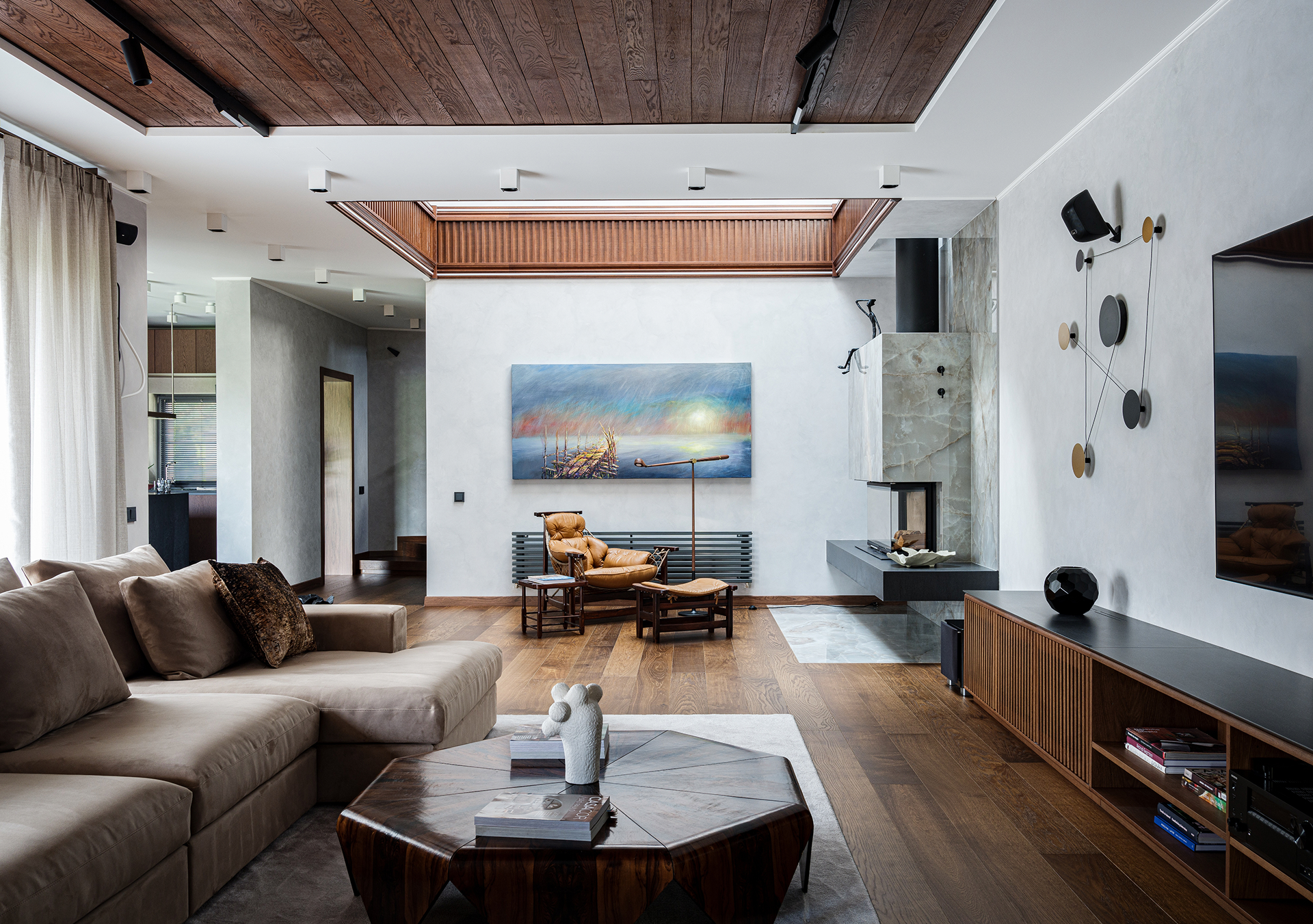 Несмотря на скромные размеры, главная ванная комната функциональна и элегантна. Здесь нет единого случайного решения – каждый материал и элемент подобран так, чтобы подчеркнуть общую идею брутального, но уютного интерьера.