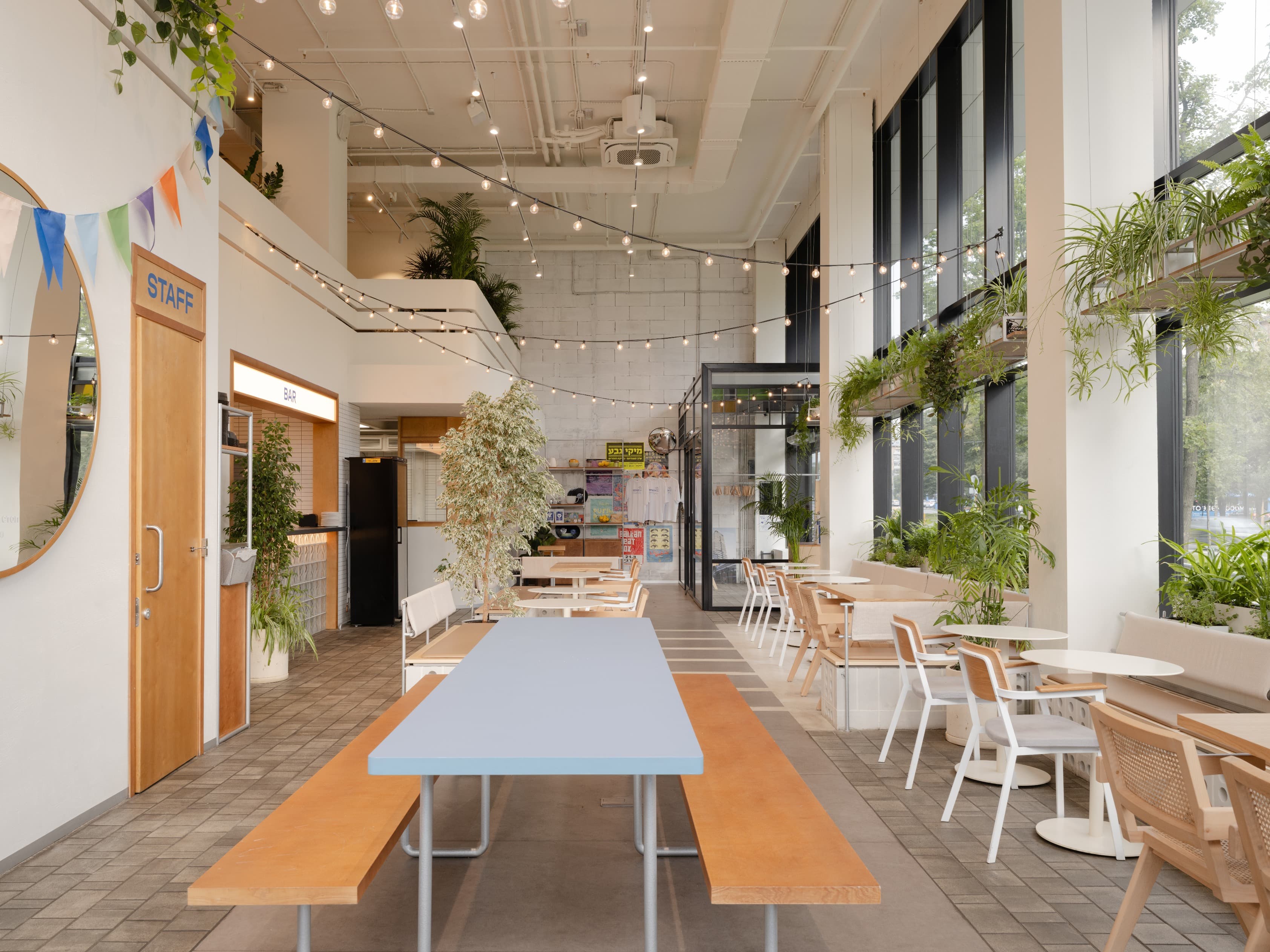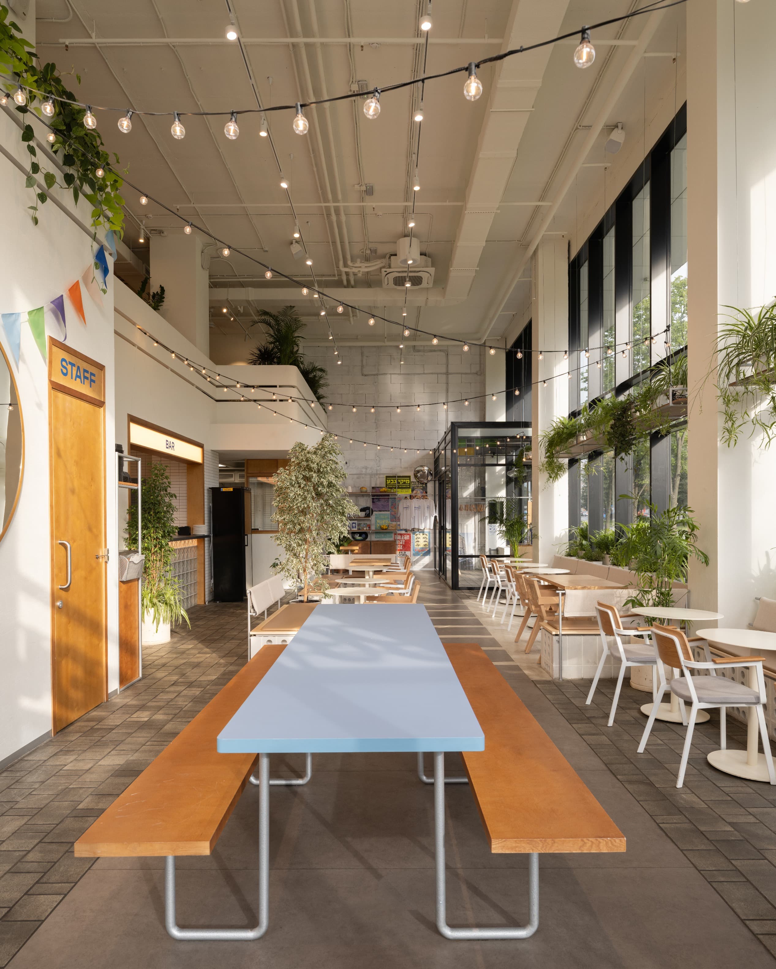 «Особенностью этого ресторана является его объем и многослойность. Второй этаж с интегрированным фасадом создает эффект городского квартала, где пространство воспринимается как сцена с множеством ракурсов. Интерьер создавался как живая среда, со временем обрастающая деталями: в процессе использования появлялись плакаты, винтажные светильники, керамика. Неслучайно фотосессия была намеренно проведена уже после открытия, когда ресторан наполнился аутентичной улицей. атмосфера.