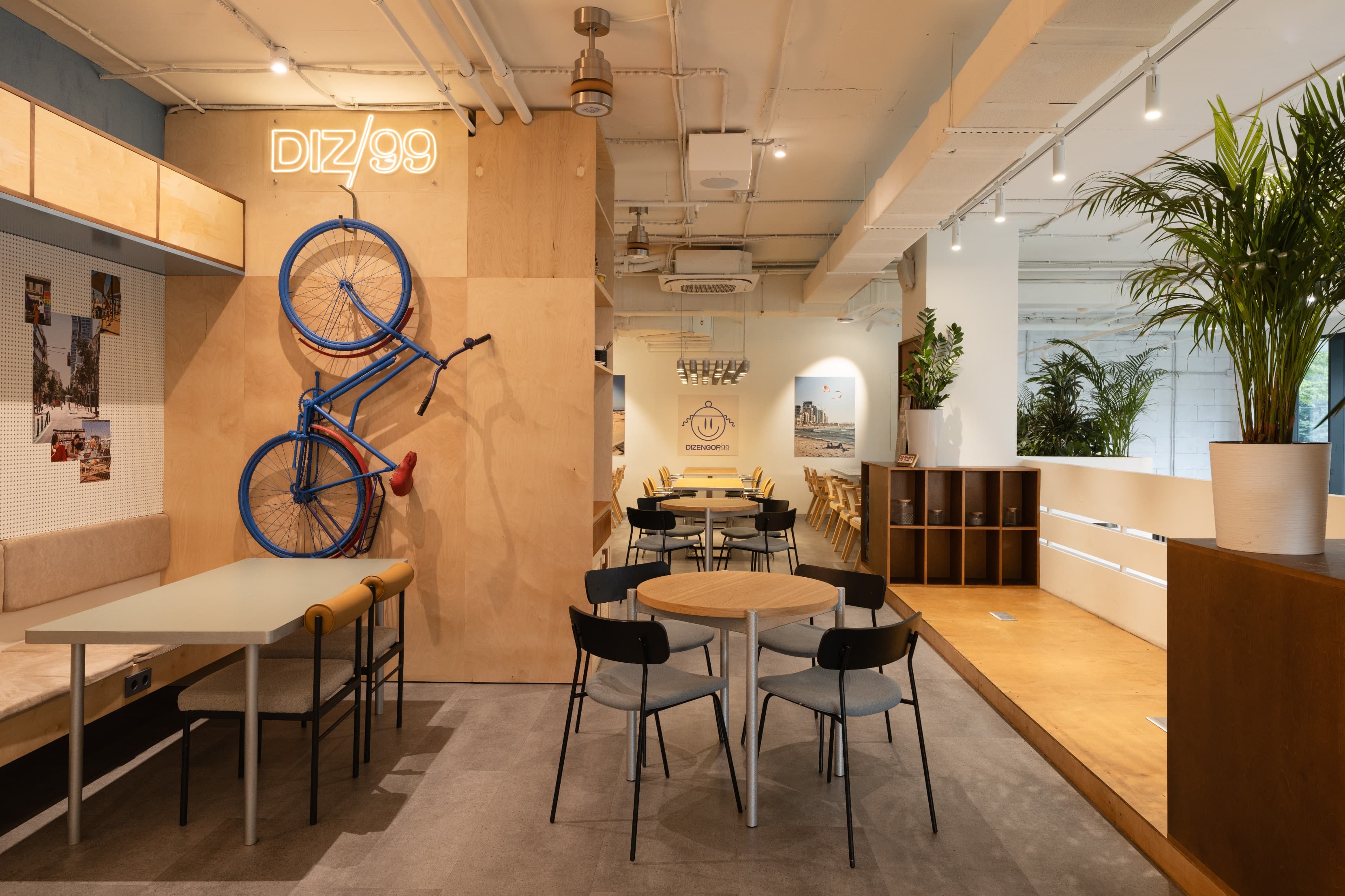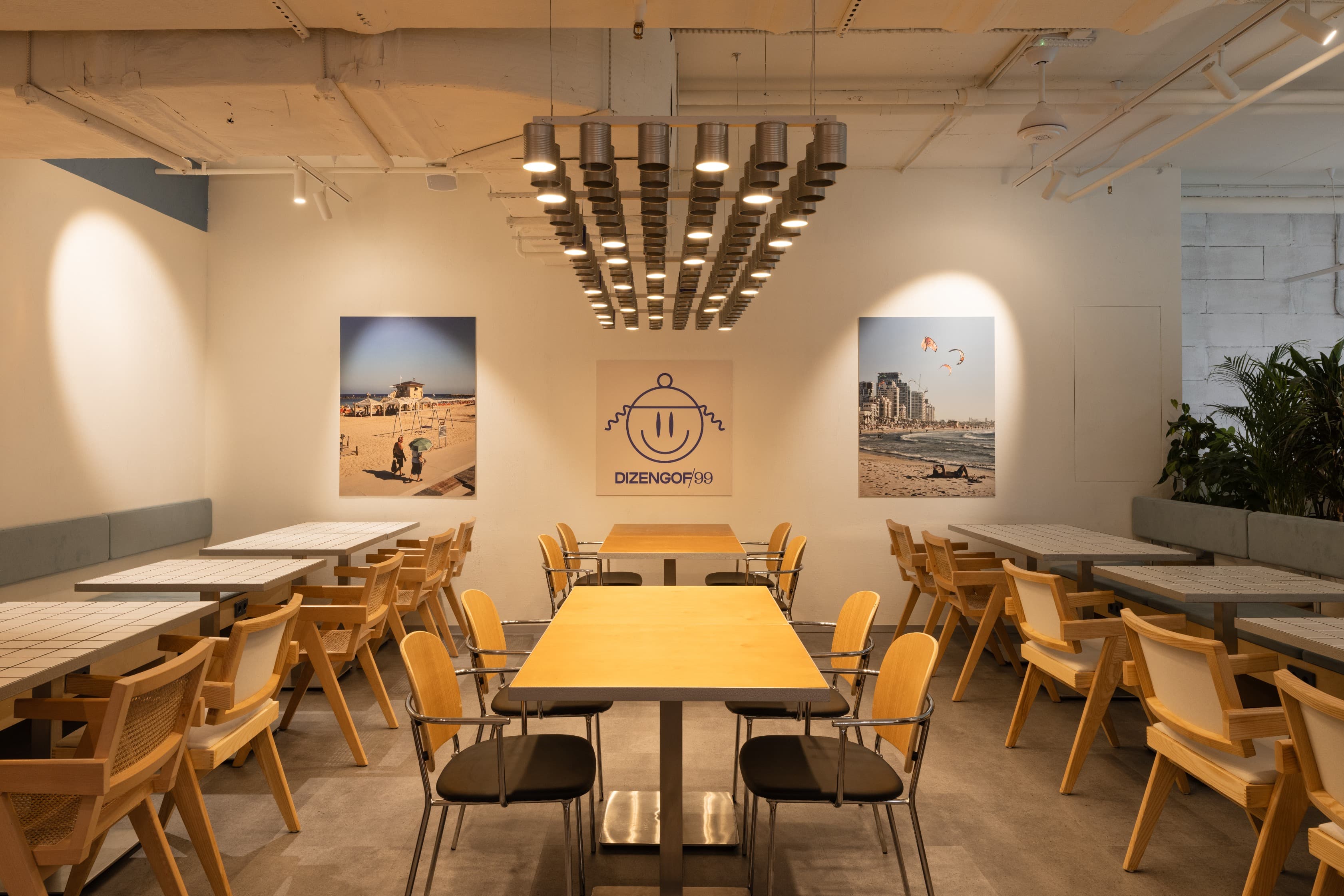 Ресторан «Дизенгоф/99» на Нахимовском проспекте в Москве стал третьим проектом сети, над которым работала команда офиса КИДЗ. В начале работы основатель ресторанов Евгений Цюпко показал архитекторам все созданные заведения бренда и рассказал их историю, начиная с самого первого, открытого десять лет назад. Уже тогда был сформулирован основной запрос: интерьер должен передавать атмосферу Тель-Авива – светлый, яркий, без лишнего декора, с ощущением Средиземноморья и гармонией улицы и внутренней среды.