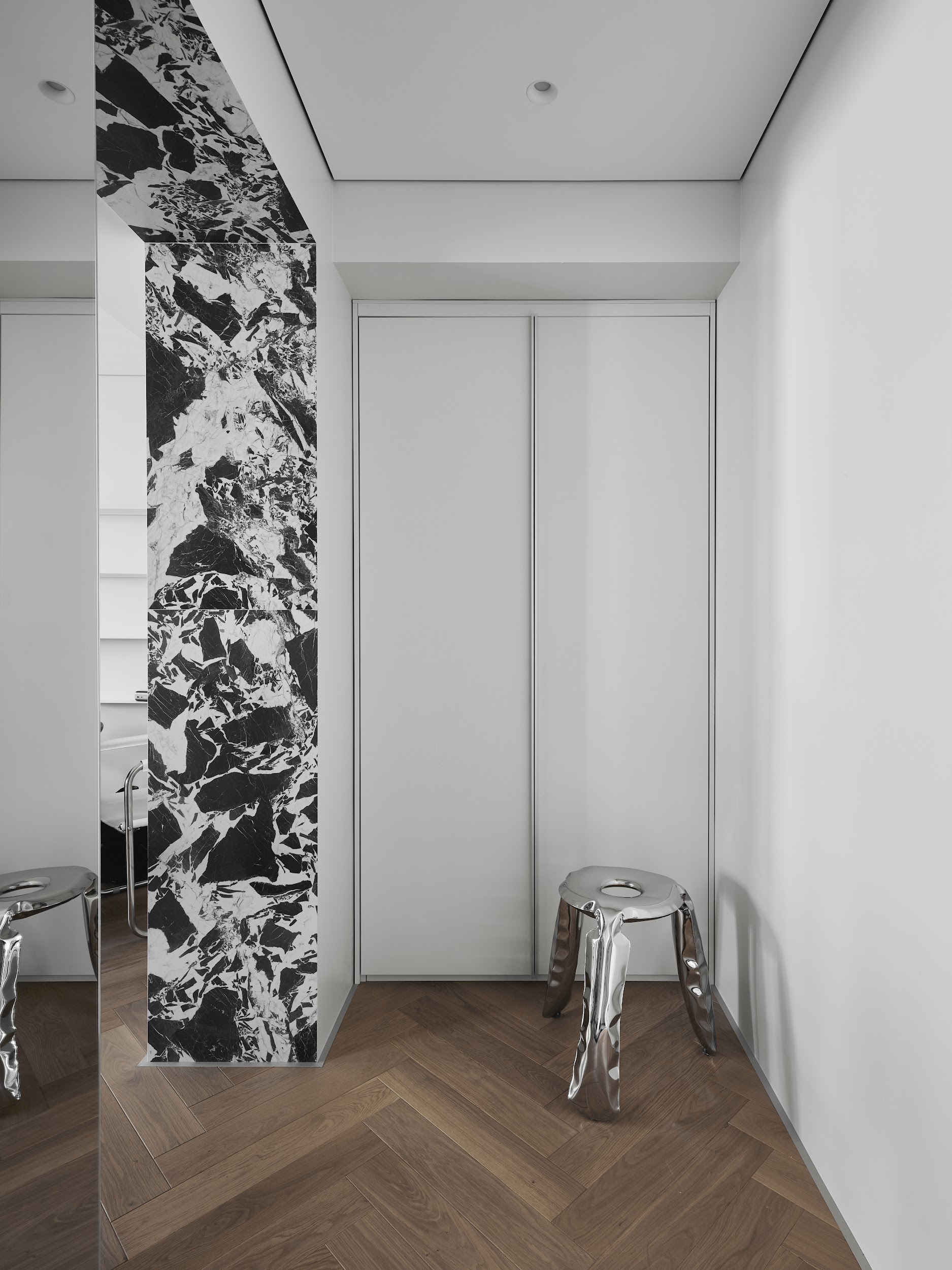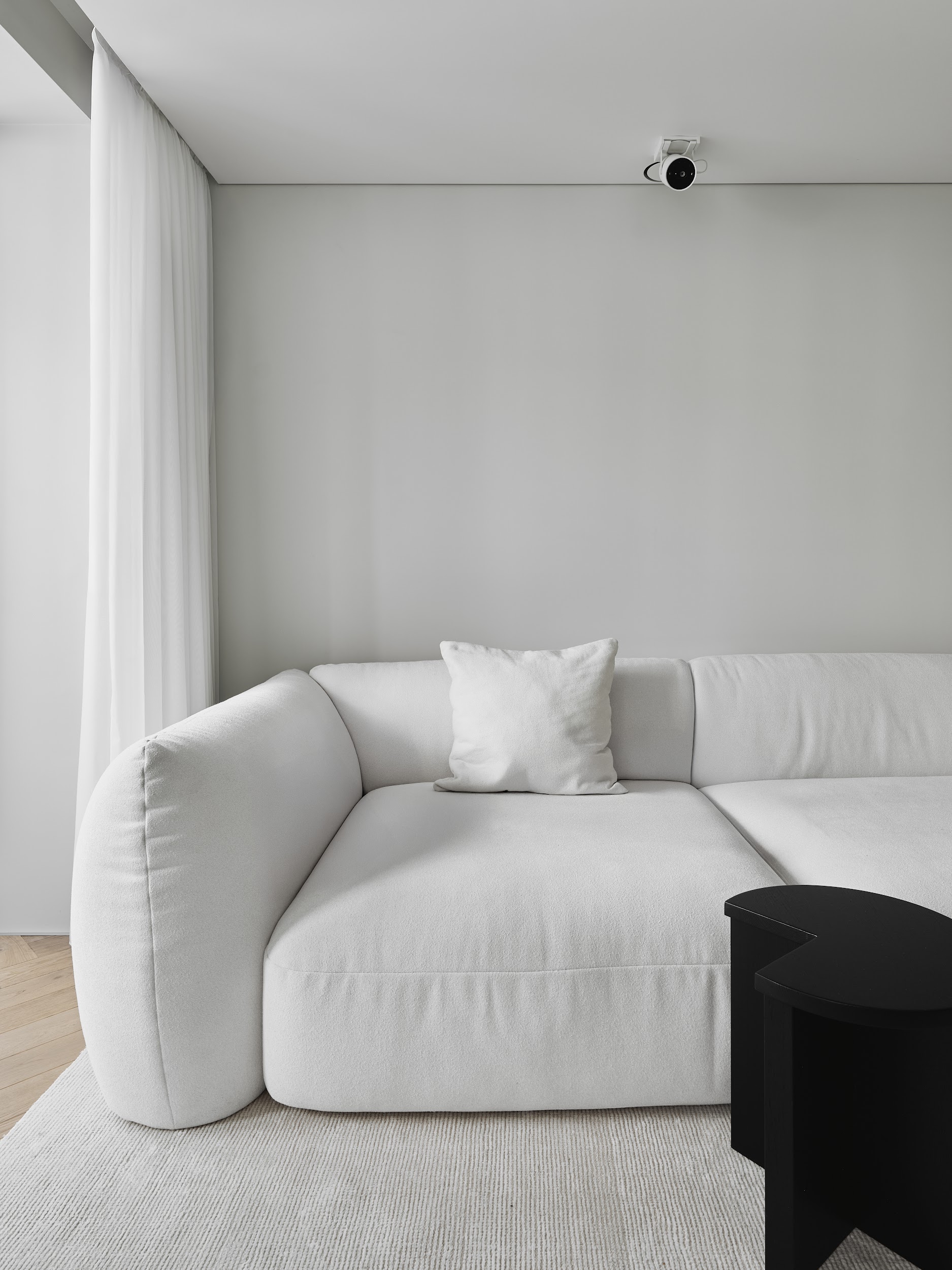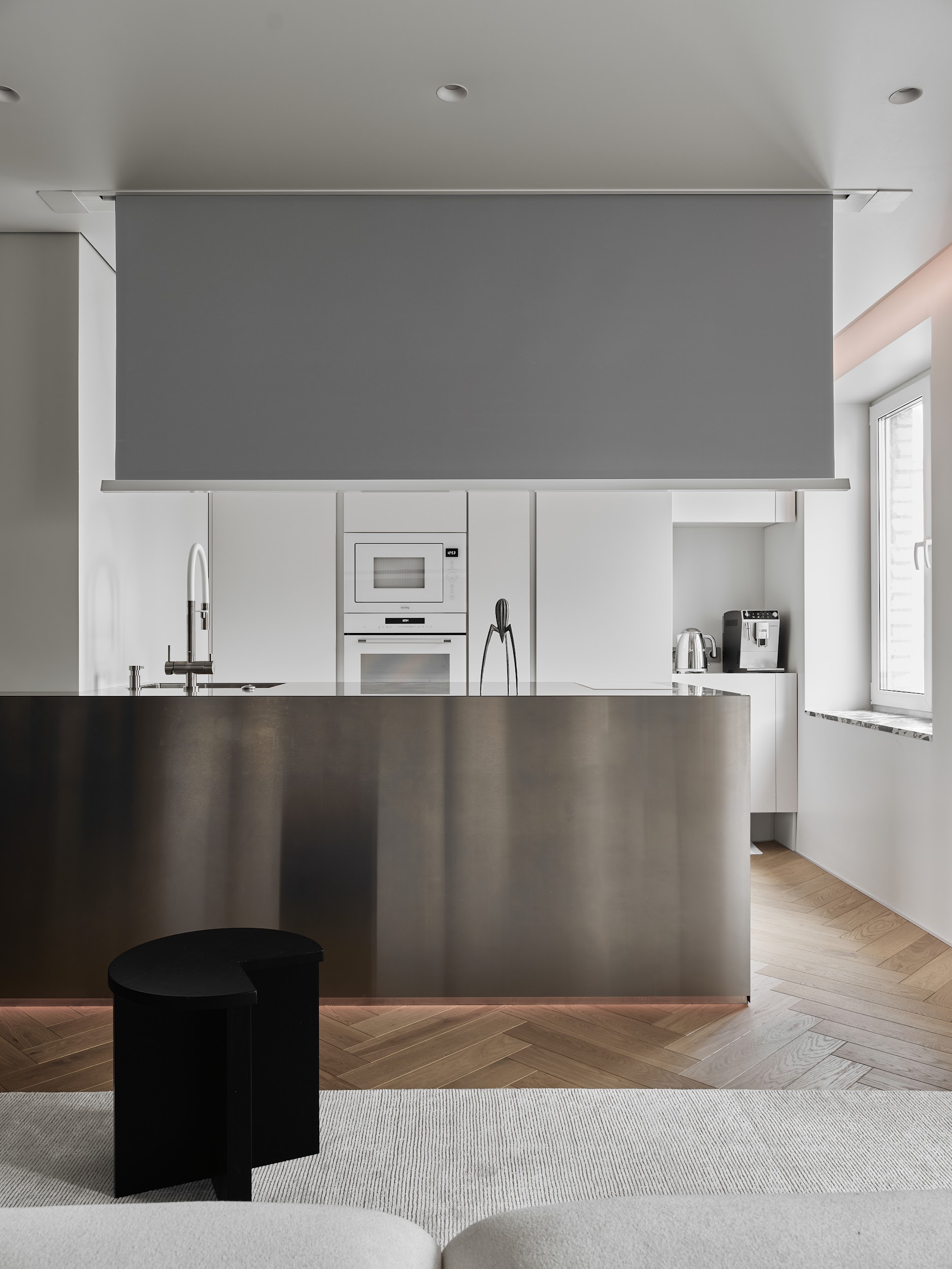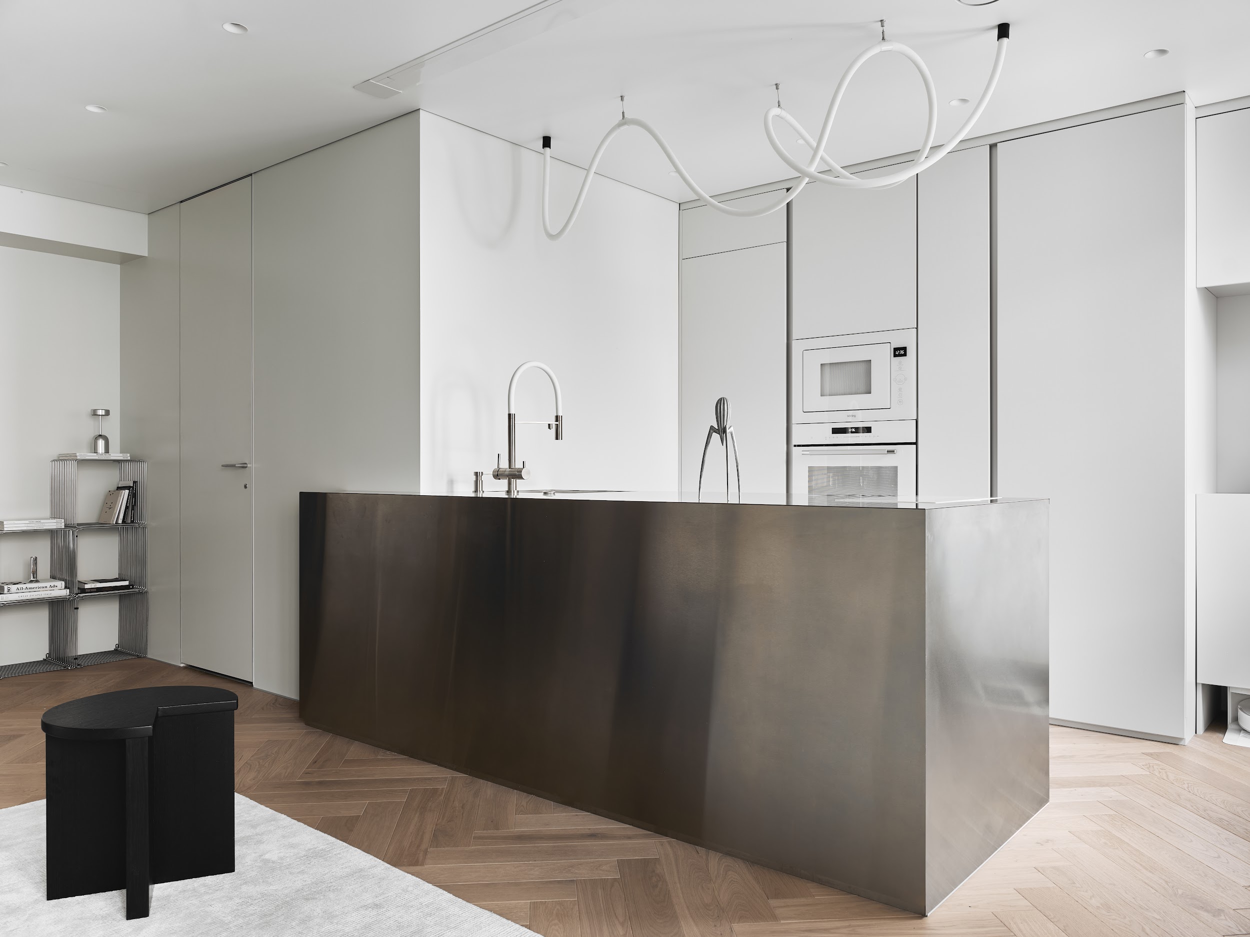 Эта квартира в Московском Старом фонде является глубоко личным проектом дизайнера Евгения Малишкина, которого он создал для него и его жены. Как соучредитель дизайнерского офиса СеверЭто воплощено в этом пространстве с площадью 51 квадратного метра. Одним из метров его основной эстетический принцип является гармония контрастов. Интерьер отражает полное единство пары в взглядах на стиль, их стремление к чистоте форм и отсутствие визуального шума.