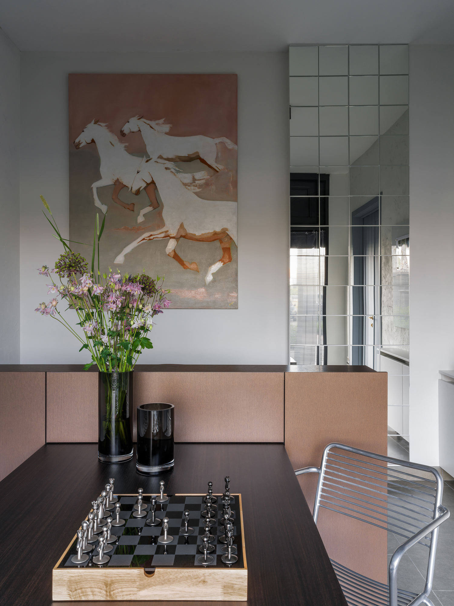 К своему четырехлетию дизайн-студия Astom построила новый офис площадью 139,4 квадратных метра. метров — два этажа с террасой для развития творческих идей. «В Astom все подчинено композиции: полосы ковров, контрасты фактур, игра света и тени», — уточняют дизайнеры. «Это пространство для вдохновенного мышления, где прошлое встречается с будущим и где каждая деталь не случайна. Здесь рождаются идеи и становятся домом, а команда продолжает работать до поздней ночи – потому что мы не хотим отсюда уезжать».