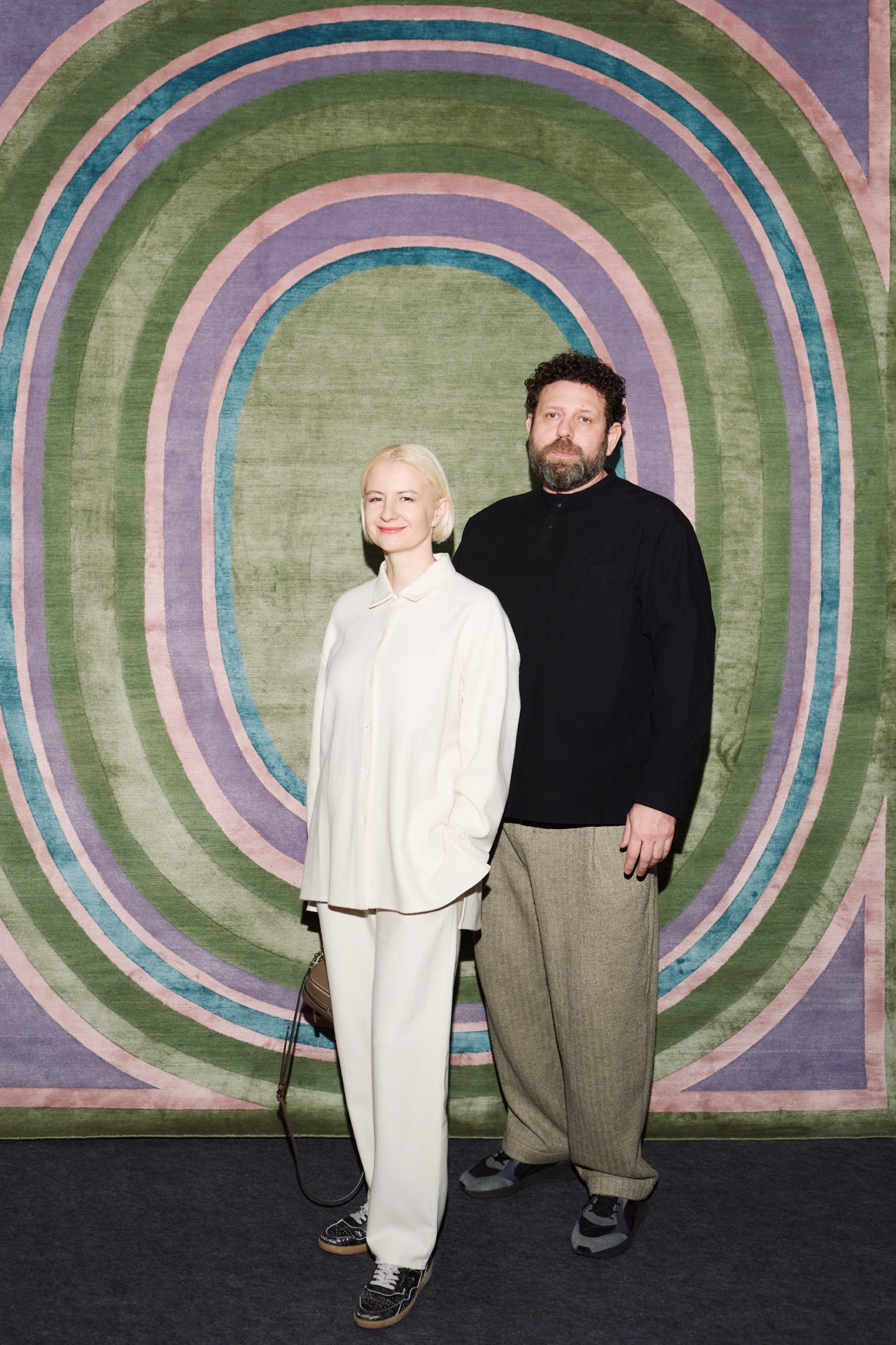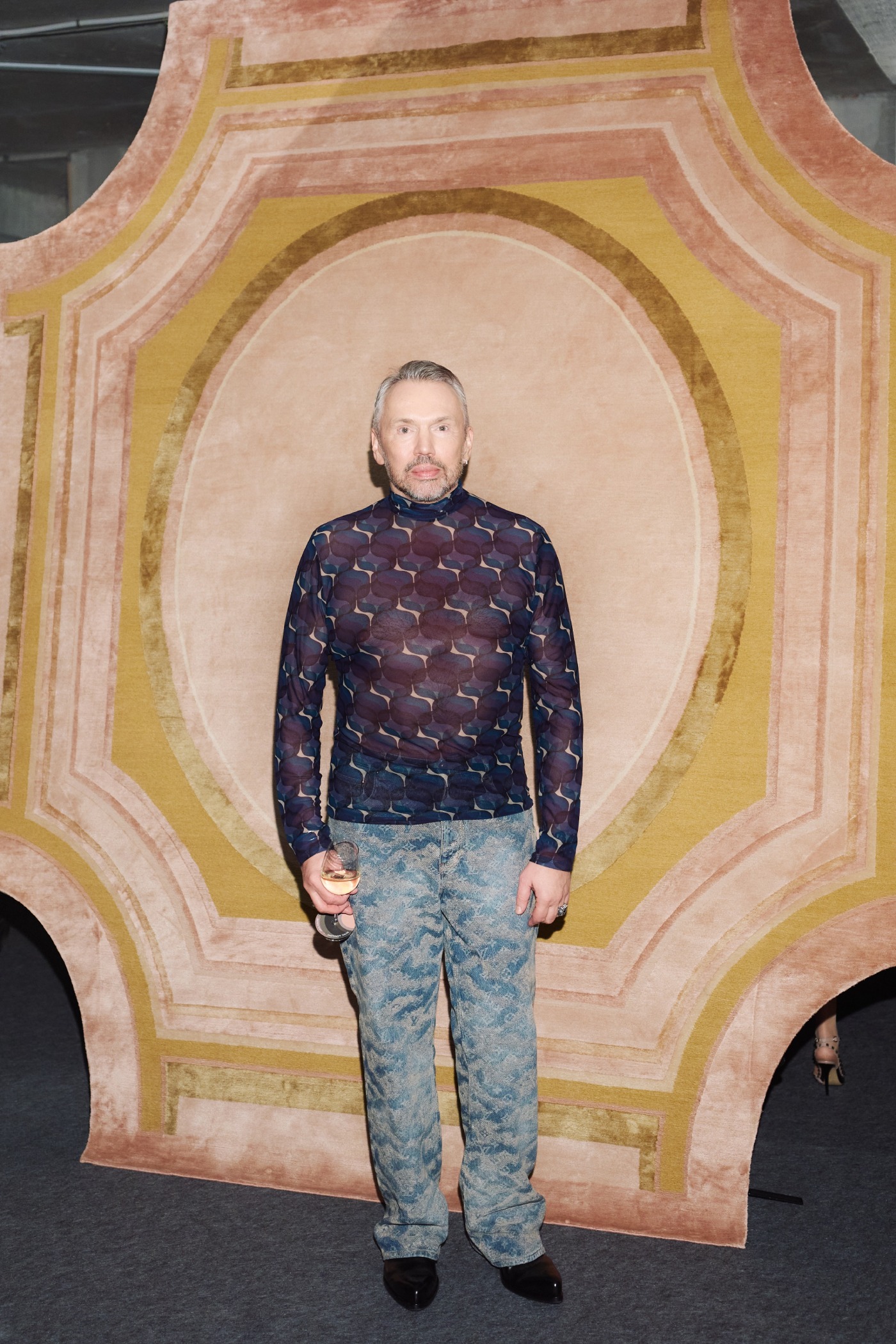 Место проведения выставки – пентхаус LUMIN view – было выбрано не случайно. В сборнике «Новая история» автор переносит на пол искусство потолков парижских дворцов XVII века. LUMIN органично продолжает эту эстетическую линию: пространство пентхауса с большой площадью и панорамными эркерами позволяет экспонировать ковры в масштабе, необходимом для произведений ручной работы. Партнером по наполнению пространства выступил крытый шоу-рум HOMEART: предметы премиальных брендов, таких как Molteni&C, Imperfetto Lab, Halo edition, а также коллекционное кресло Julian Mayor, представленное на Cosmoscow 2025, гармонично завершают сценографию. Настроение вечера поддержали вина из коллекции SimpleWine — сети винных торговцев, входящей в группу компаний Simple. Креман из долины Луары, Совиньон Блан из Бургундии и белый купаж из Гаскони продолжают французскую тему коллекции. Присутствовал на вечере и дизайнер новых ковров Пьер Гоналон: он прилетел в Москву, чтобы лично представить коллекцию, описать ее художественный контекст и передать то тонкое видение формы, которое лежит в основе современной истории.