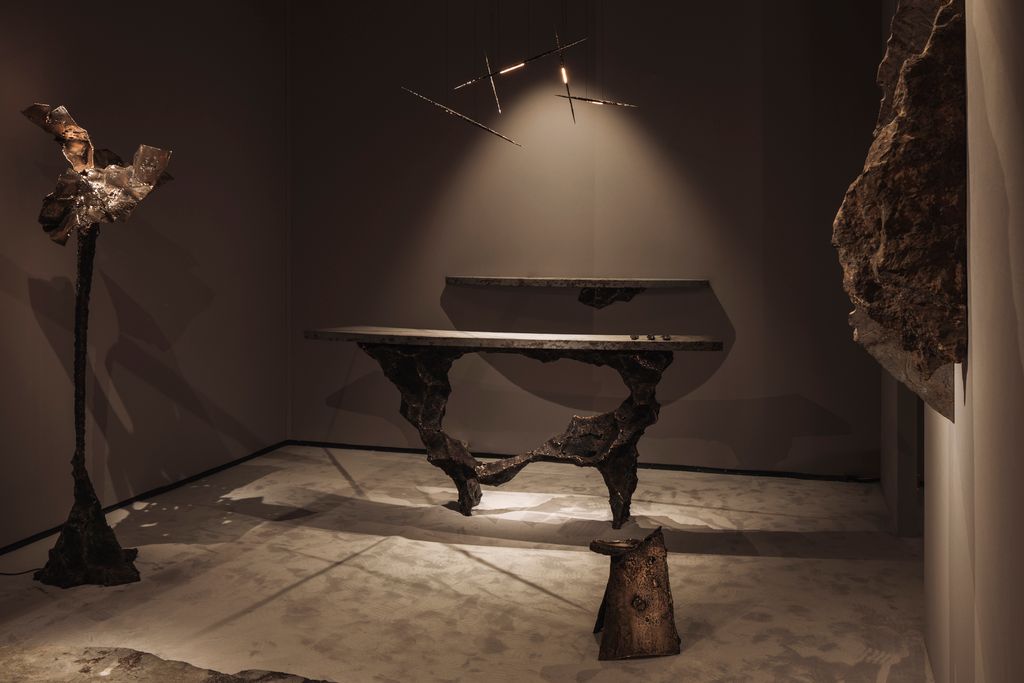 Галерея Портуондо создала пространство баланса между модернизмом и мастерством. Камыш, теплое дерево, геометрия середины века – все в умеренном ритме и без ностальгии. На «Объектах с повествованиями» (Брюссель) бронза и минералы звучали как структуры молчания. Их предметы не украшали стенд, они основали Государство. Это археология будущего, где вес и время обретают новый материал.