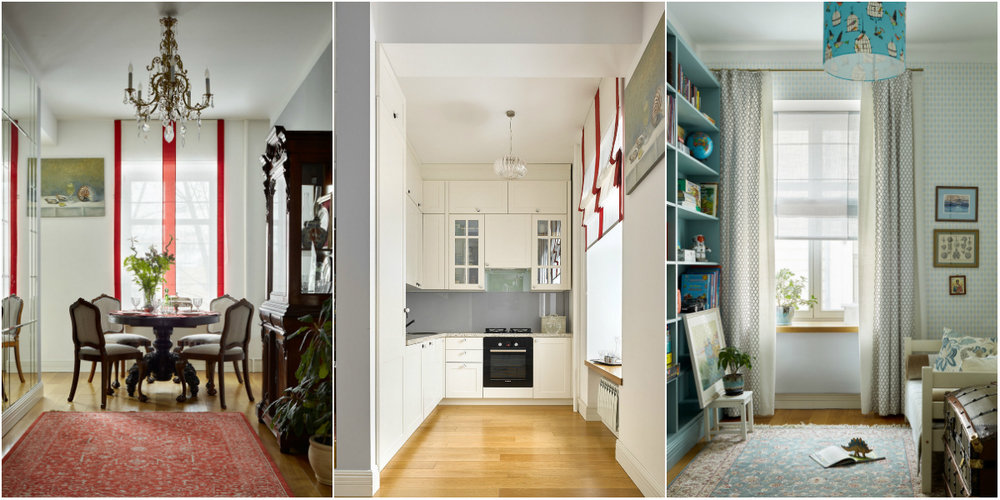 После капитального ремонта практическое расположение, просторные системы хранения и легкая отделка появились в старой квартире. И чтобы не превратить пространство в безликий римейк, дизайнер заполнил ситуацию старой мебели и декора.