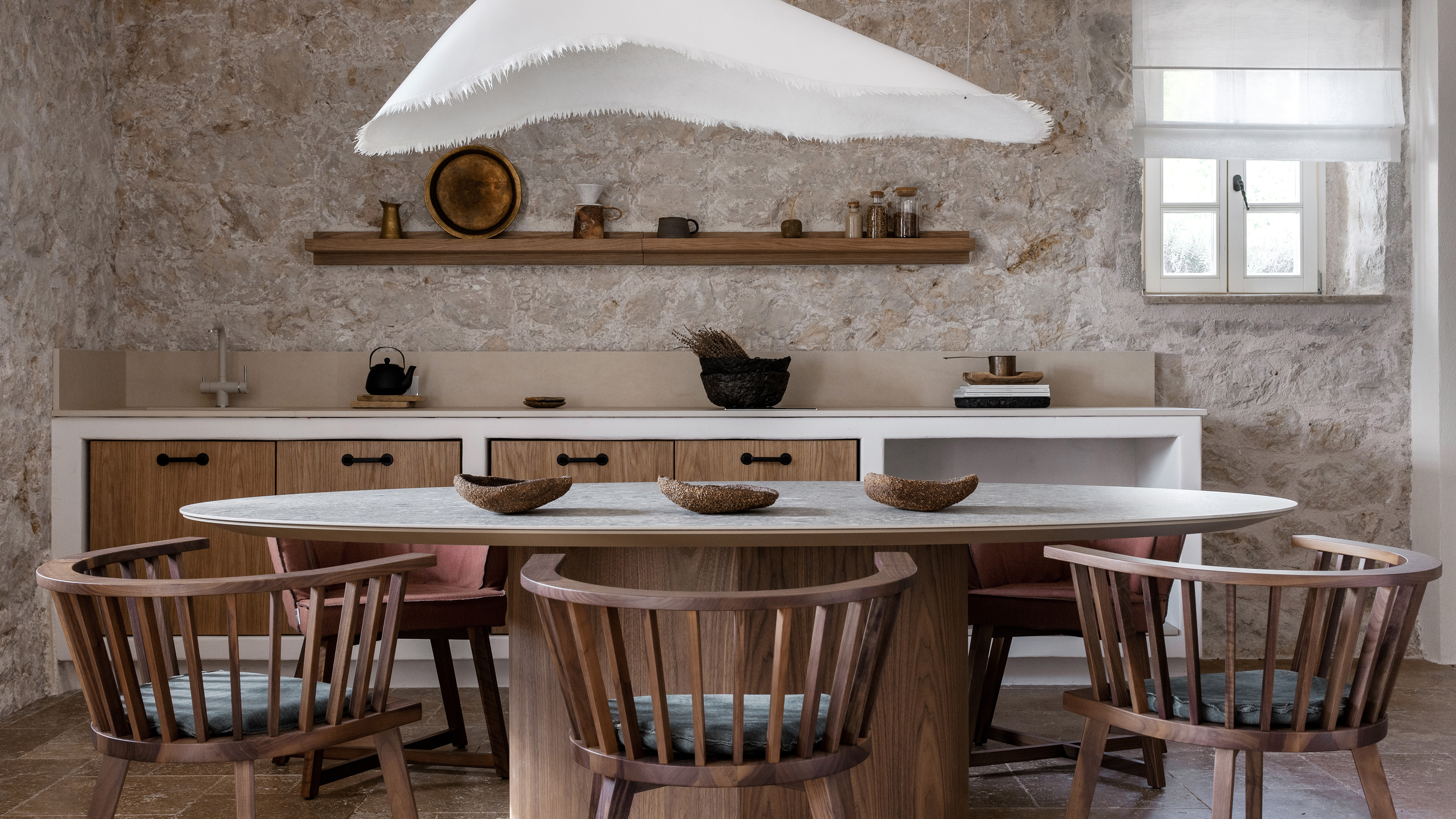 «Главный герой — кухонный фартук. Мне не хотелось делать обычный керамогранит. Мы решили поклеить текстильные обои с плетёной фактурой пшеничного цвета. Хотели придать ему зеленый оттенок, поэтому наклеили простое стекло. И обычно он зеленый. Так мы получили желаемый эффект, соответствующий нашим ожиданиям», — говорят дизайнеры.