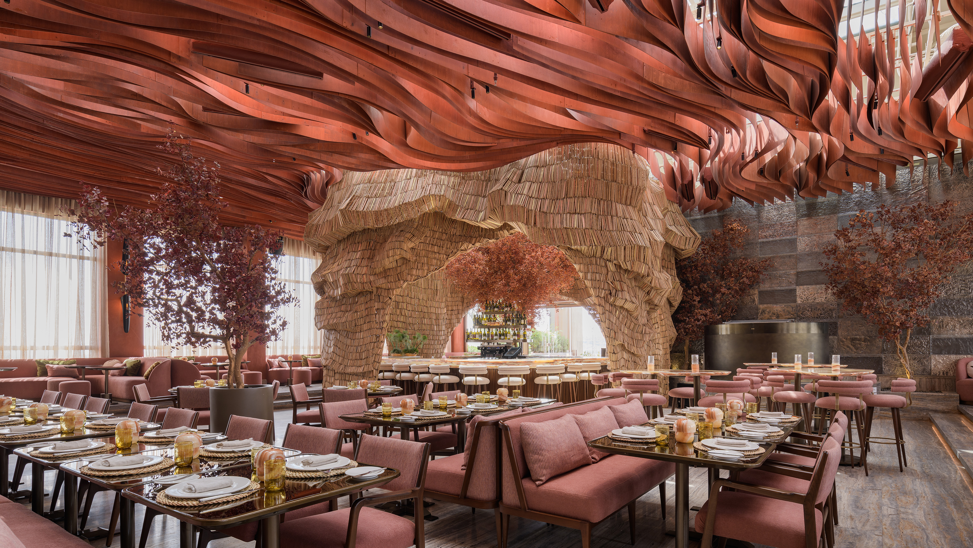 Ресторан Lucida — это лаундж-бар на крыше в Каире, спроектированный египетским архитектором Шахирой Фахми из Shahira Fahmy Architects. Площадь 1250 м². метров создавался как место встреч и общения, где еда символизирует заботу и тепло в ритме современного города. Розовые терракотовые стены напоминают заливной бетон, эффектные металлические потолки пропускают естественный свет, а замысловатая структура колонн и навесов из финиковых пальм связывают этот необычный интерьер с прошлым, наследием и ремеслами региона.