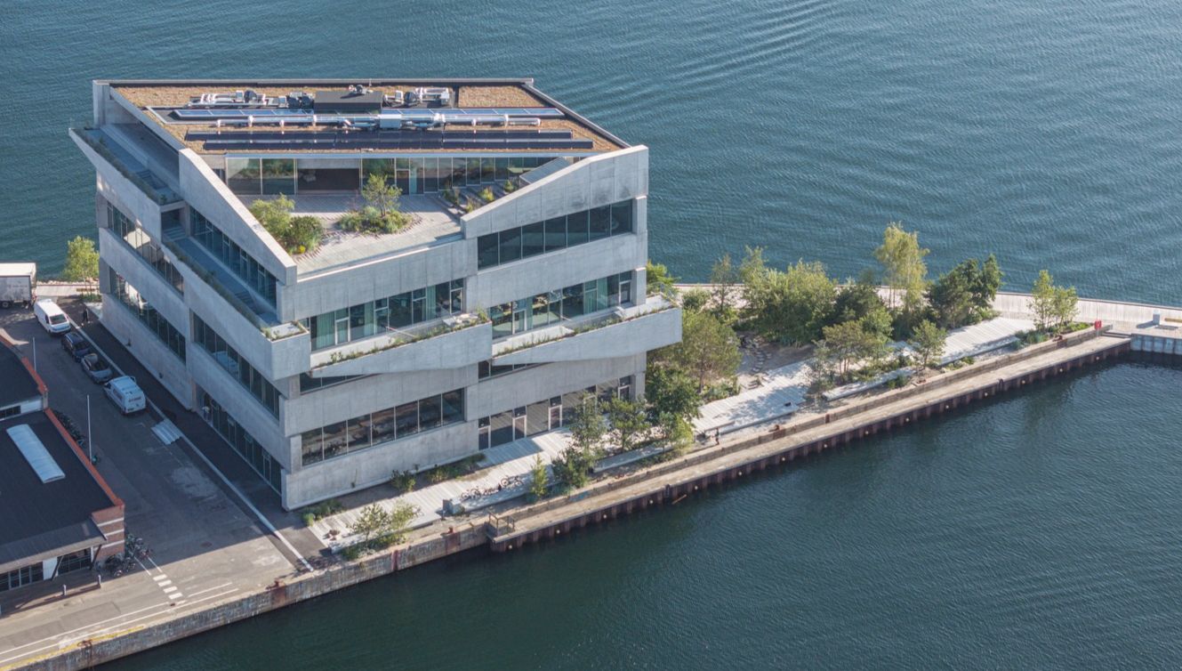 Новая штаб-квартира студии Группа Бьярке Ингельс (BIG) на набережной Копенгагена демонстрирует комплексный подход к проектированию и архитектуре. Семиэтажное здание площадью 4488 м². метров было завершено весной 2024 года. Этот БОЛЬШОЙ офис сочетает в себе геотермальные энергетические системы и солнечные панели, которые обеспечивают 60% необходимого спроса за счет возобновляемых источников энергии. Геотермальная установка, в свою очередь, отвечает за 84% отопления здания и 100% охлаждения.