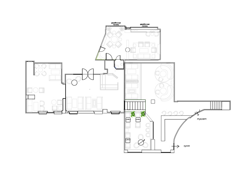 Цель проекта состояла в том, чтобы создать четыре части с другим настроением, также было важно дать интерьерам атмосферу элитарности. Дизайнер сосредоточился на необычном расположении световой мебели и сценариев. В VIP -комнате, которая была создана из нуля, наиболее важным было визуально поднять низкий потолок стен и отражения больших окон в сочетании со сценариями освещения, позволили этой проблеме решить.