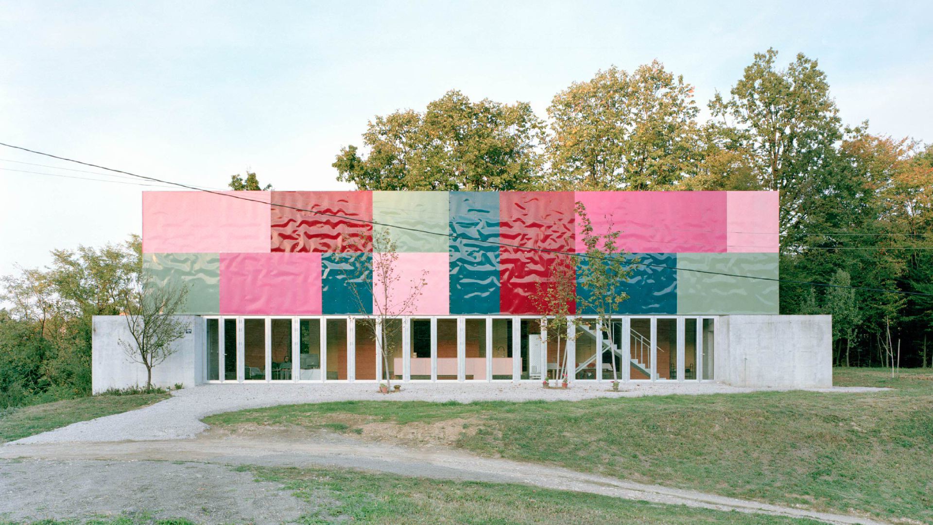 Строительство здания вдохновлено югославским модернизмом. Непрерывная полоса стеклянных дверей и окон, обрамленная объемами из не трансформированного бетона с обеих сторон, проходит по всей длине фасада — он «открывает» дом для внешнего мира. Свободная планировка общественного пространства поощряет взаимодействие жителей, но не заставляет его его.