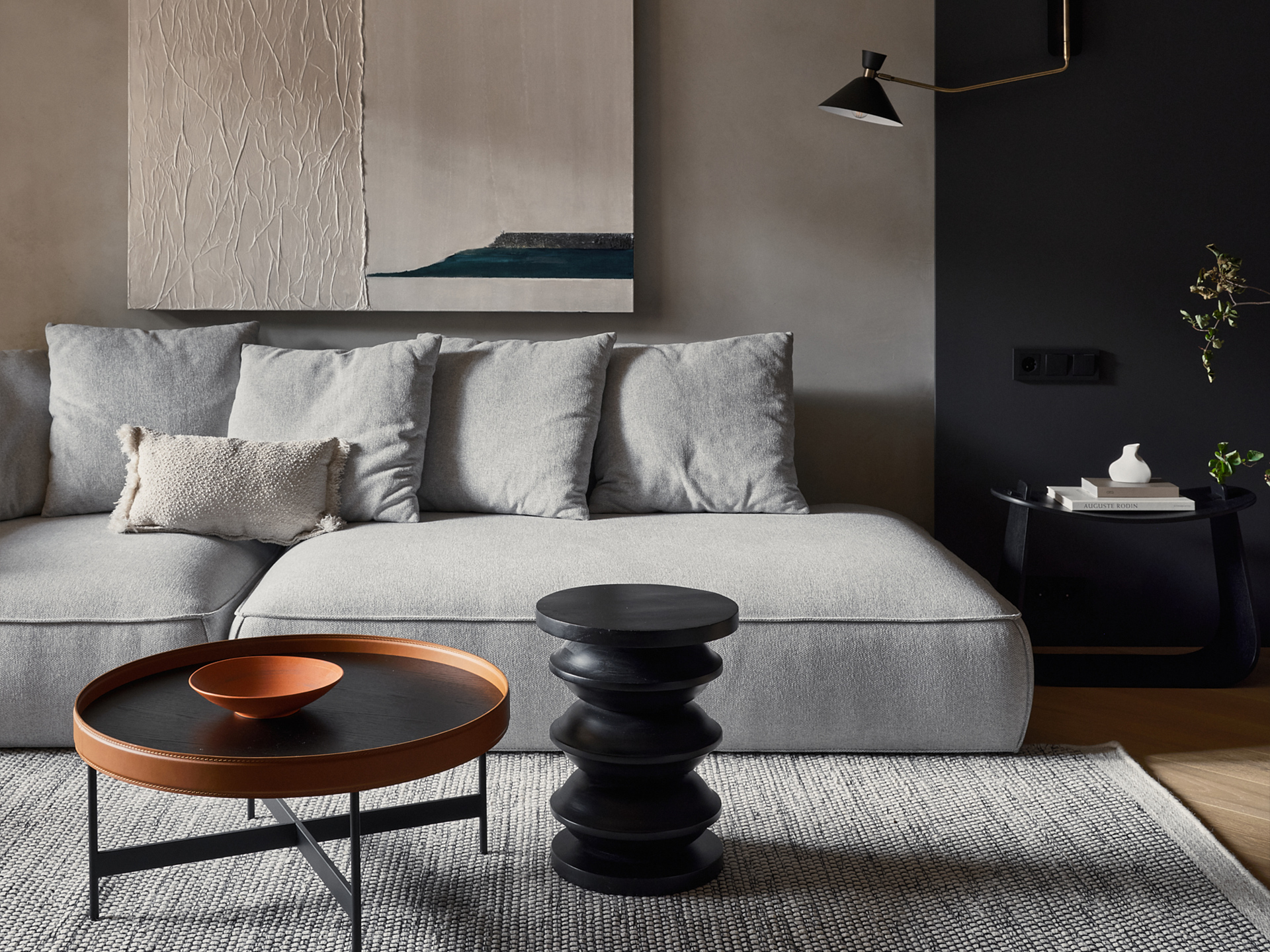 Архитектор Александра Агапова и дизайнер Маргарита Пушкарева из бюро A&R Interiors спроектировали квартиру для молодого человека, работающего в IT-сфере. «Нашей главной задачей было создать минималистичный и функциональный интерьер в темных натуральных тонах с необычными деталями», — поясняют авторы проекта. «Важной особенностью проекта стало создание комфортного рабочего пространства и в то же время теплого домашнего пространства».