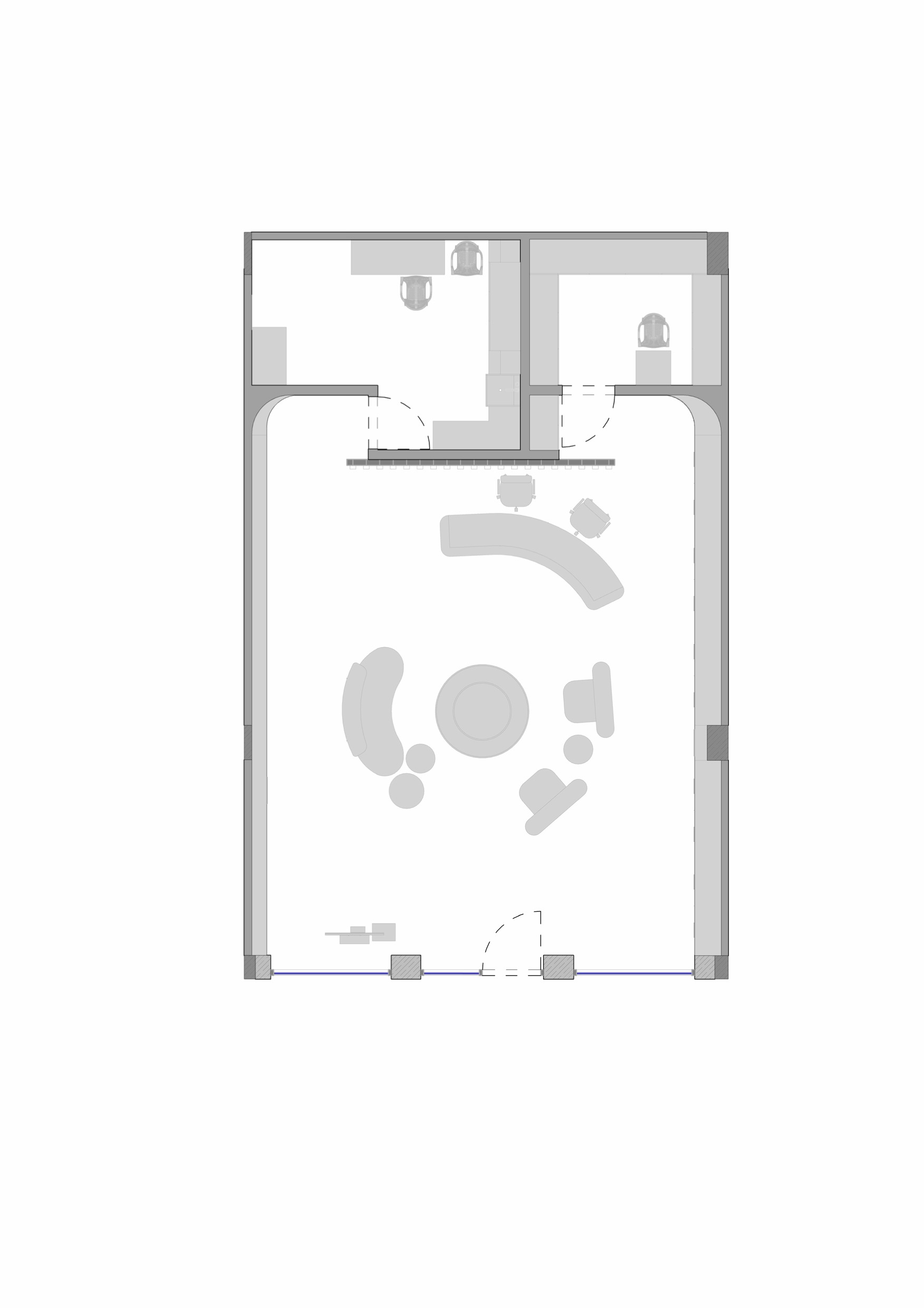 Авторы столкнулись с задачей создания гармоничной рамки для коллекций, представленных в магазине. Было необходимо обратить внимание на опыт и атмосферу клиента, чтобы создать место, где посетители будут чувствовать себя комфортно, свободно погружены в процесс отбора, опытные изображения и наслаждаться им. Также было важно органически интегрировать выставочный зал в окружающее пространство художественного центра, но в то же время сохранить индивидуальность.