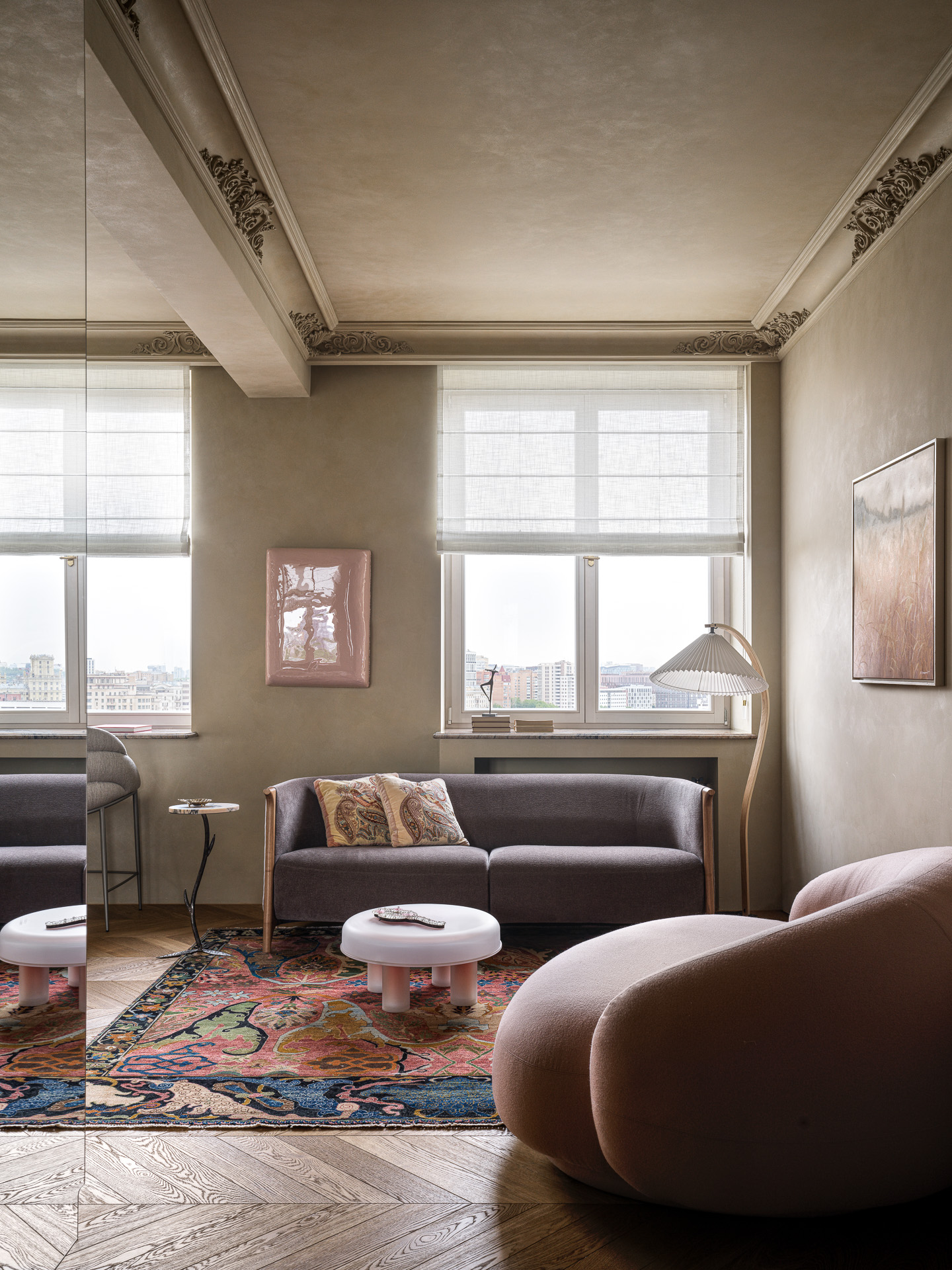 «К сожалению, предыдущие владельцы не сохранили историческое наследие квартиры, поэтому было решено создать интерьер на стыке современности и старины. Для меня, как заказчика и автора проекта, было важно раскрыть тот потенциал, который скрыт в этом пространстве. Меня вдохновили большие окна с массивными откосами, высота потолка и, конечно же, вид на город, открывающийся из каждой комнаты. Это был прекрасный дар обретения уникальное пространство. здание с богатой историей, откуда открывается захватывающий и динамичный вид на город.