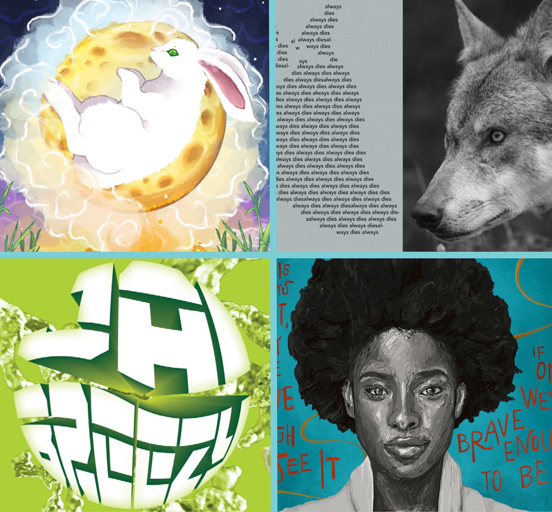 На витрине представлены работы старших специалистов по интерактивному медиа-дизайну Эбби Картахены из Джонсон-Сити, штат Теннесси, и Эшли Робертс из Кингспорта, штат Теннесси, а также специалистов по графическому дизайну Николаса Хенсли из Эрвина, штат Теннеси, и Камдина Ли из Кингспорта.