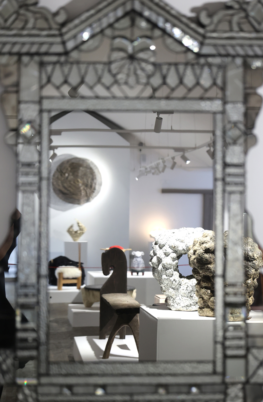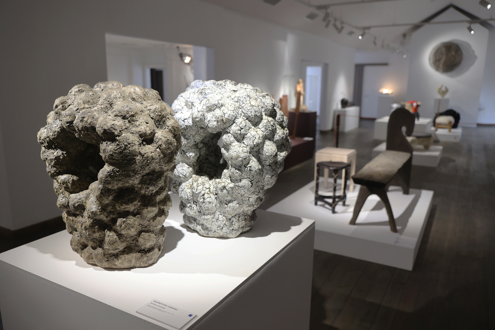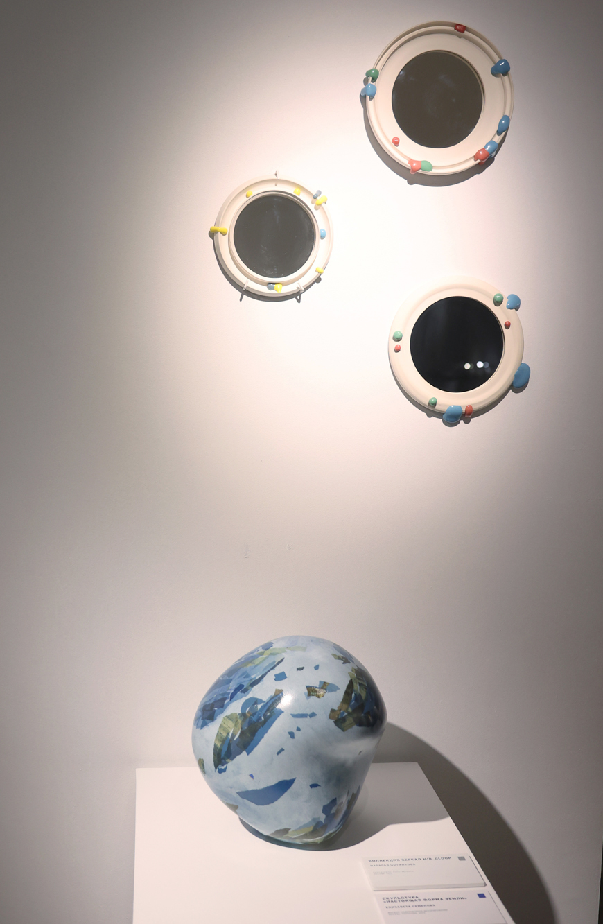 Архитектор выставки Майя Фролова тщательно отнеслась к каждой работе, стараясь раскрыть замысел автора. По традиции выставку открывает проект местной художницы – керамические скульптуры Марины Акиловой «Насквозь». Предметы искусства, вдохновленные стегаными узорами эпохи неолита, напоминают древние камни. Для достижения желаемого эффекта Марина применила технику послойной росписи с эффектом золы и обожгла изделия в дровяной печи. Таким образом дизайнер стремится передать ощущение старины, глубины и величия, которое возникает на территории Пскова.
