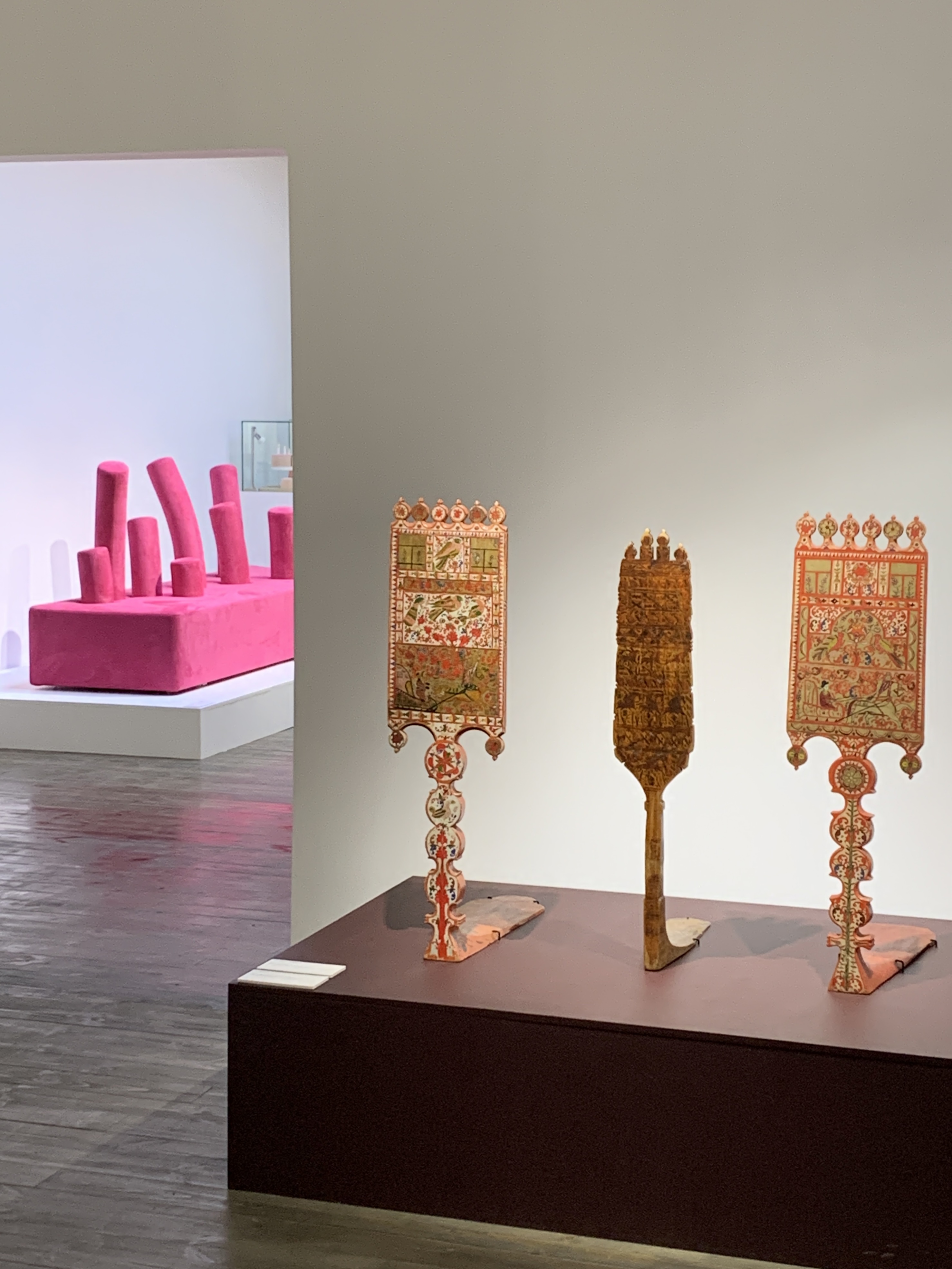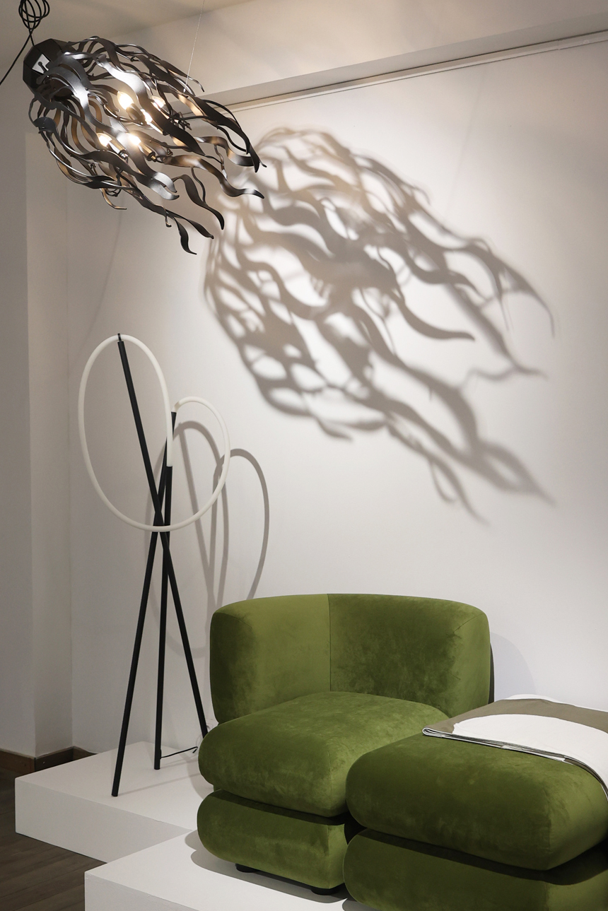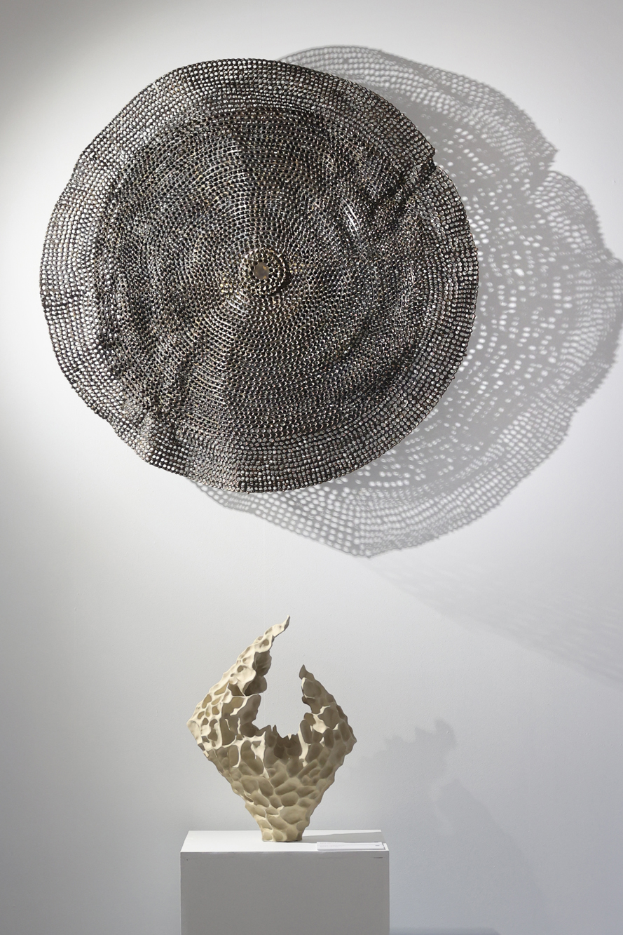 Архитектор выставки Майя Фролова тщательно отнеслась к каждой работе, стараясь раскрыть замысел автора. По традиции выставку открывает проект местной художницы – керамические скульптуры Марины Акиловой «Насквозь». Предметы искусства, вдохновленные стегаными узорами эпохи неолита, напоминают древние камни. Для достижения желаемого эффекта Марина применила технику послойной росписи с эффектом золы и обожгла изделия в дровяной печи. Таким образом дизайнер стремится передать ощущение старины, глубины и величия, которое возникает на территории Пскова.