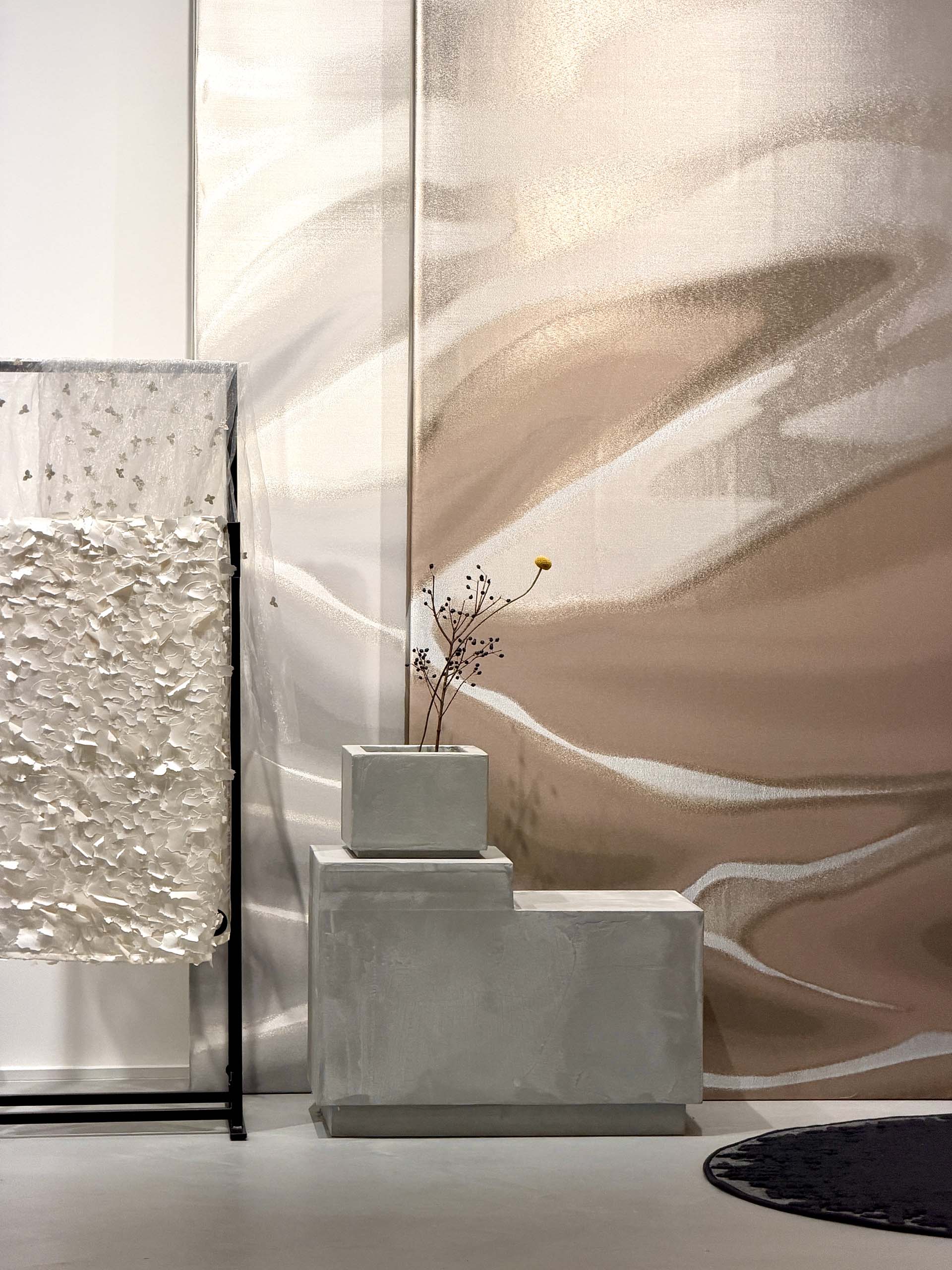 В этом сезоне нас вдохновили виды горы Сентис и окружающий альпийский пейзаж: природные контрасты, выраженные в светло-сером известняке, приглушенных тонах мергеля, серебристом блеске ледников, бархатистой зелени мха и ослепительной белизне снега. Вселенная минеральных палитр, нарочито сдержанная и порой неожиданная для Шлепфера.