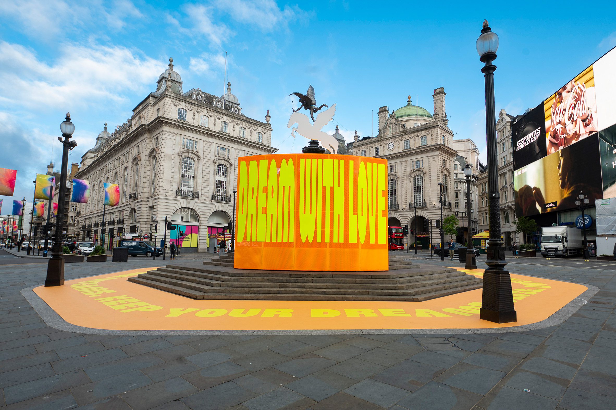 Британско-нигерийский дизайнер Йинка Илори украсила фонтан Эрос на площади Пикадилли в центре Лондона яркой инсталляцией под названием «Хорошие вещи приходят к тем, кто ждет». Инсталляция, состоящая из двух изогнутых оранжевых постаментов, увенчанных белыми пегасами, посылает позитивное послание одному из самых оживленных перекрестков города.
