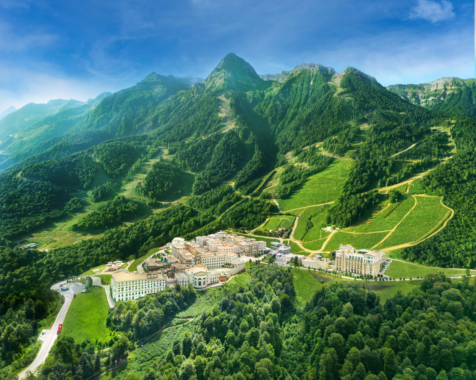 Немного ниже, на высоте 540 метров, расположен комплекс Polyana 540 с обслуживающими квартирами. Здесь представлены три типа резиденций: с одной, двумя и тремя спальнями. Панорамный вид на цепь Кавказа и набережной, открытой вдоль реки Мзимта, в нескольких минутах ходьбы — рестораны, спа, магазины и лыжные маршруты. Резиденции предлагаются с украшением и мебелью, полностью готовыми к проживанию. Удобная соседняя территория с переулками EV — прекрасное место для ходьбы.